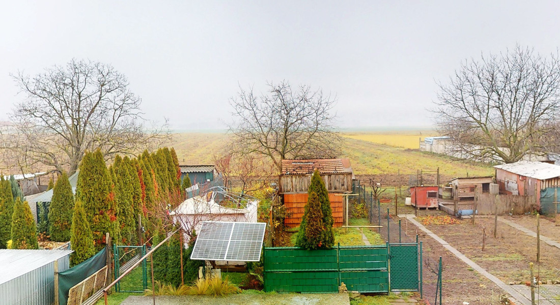 Pred bytovým domom sa nachádza záhrada o výmere 90m2 so slnečným kolektorom (vlastník mal na pozemku menší bazén) prislúchajúca k bytu.