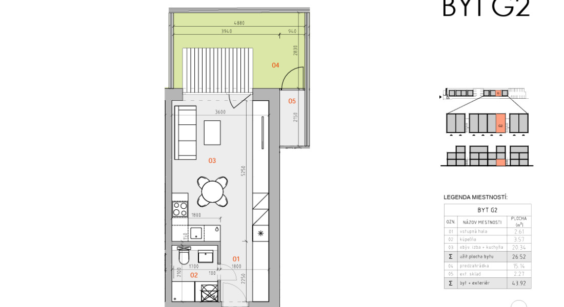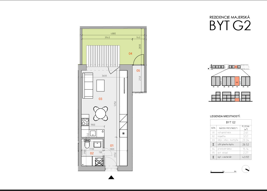 Rozloha bytu 41,69m² vrátane slnečnej záhradky.