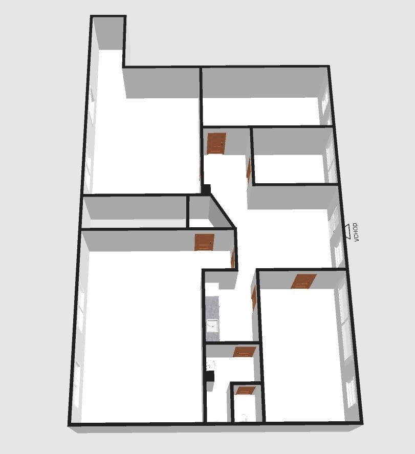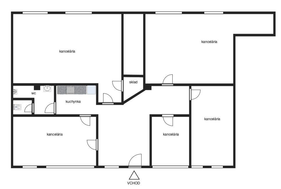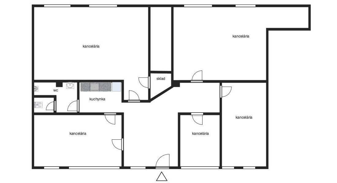 Priestor je aktuálne rozdelený sadrokartónovými priečkami na päť samostatných kancelárií, halu, kuchynku a dve WC. Je tu možnosť vytvoriť veľký otvorený celok – predajný showroom, alebo priestor variabilne upraviť podľa potrieb. Rovnako je možnosť rozšírenia o vedľajší obchodný priestor (64 m²) a vytvorenia jedného celku o celkovej výmere 210 m².