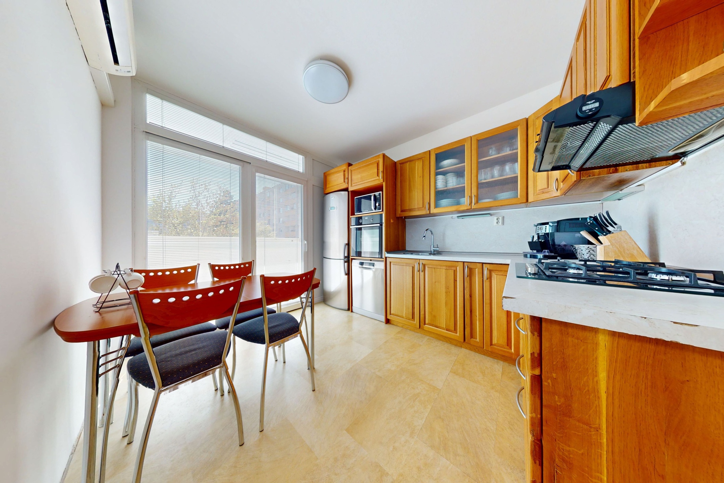 Nehnuteľnosť prešla rekonštrukciou: bezpečnostné vstupné dvere, interiérové dvere, plastové okná, nové radiátory, klimatizácia a nové stierky. V roku 2021 bola kompletne zrekonštruovaná kúpeľňa a WC. Lodžia je zasklená bezrámovým posuvným systémom.