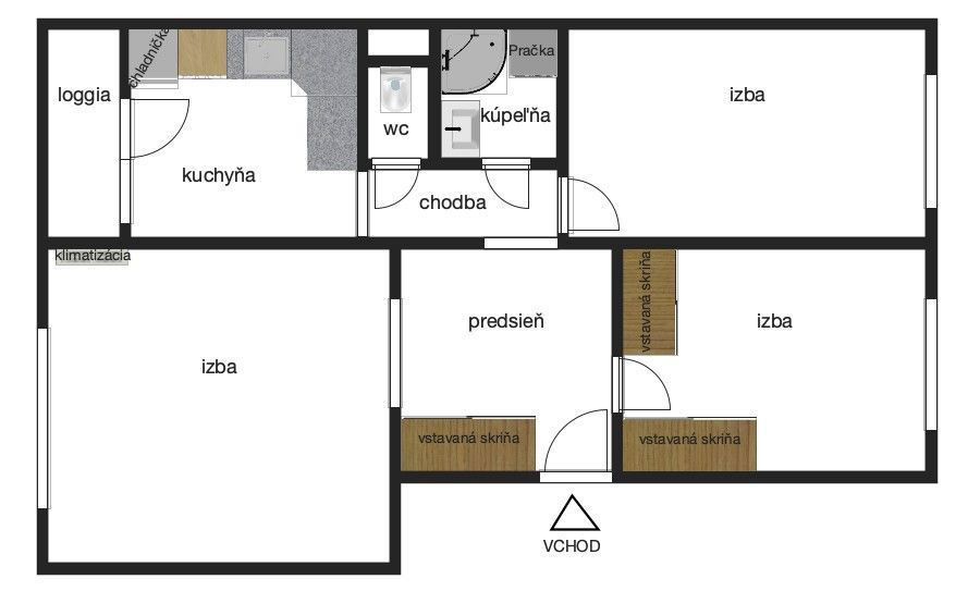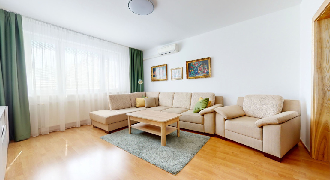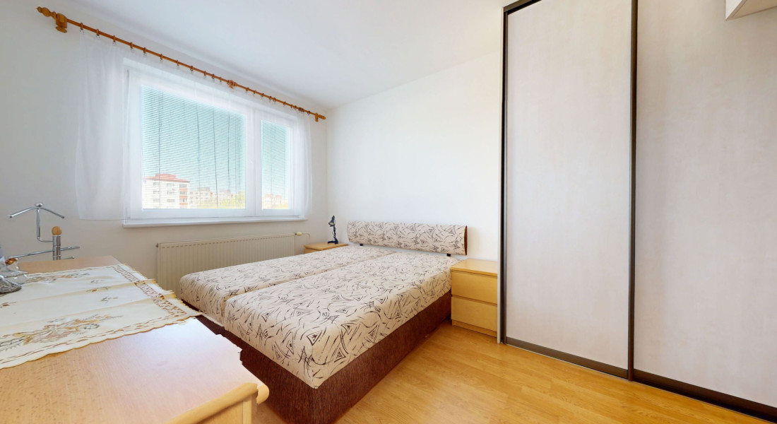 Byt má výmeru 73,55 m², z toho lodžia tvorí 3,61 m². Nachádza sa na 3./8. poschodí bytového domu. Má výbornú dispozíciu: vstupná hala so vstavanou skriňou, priestranná slnečná obývacia izba, kuchyňa s výstupom na lodžiu, kúpeľňa so sprchovým kútom, samostatné WC, dve samostatné izby so šatníkom a pivnica.