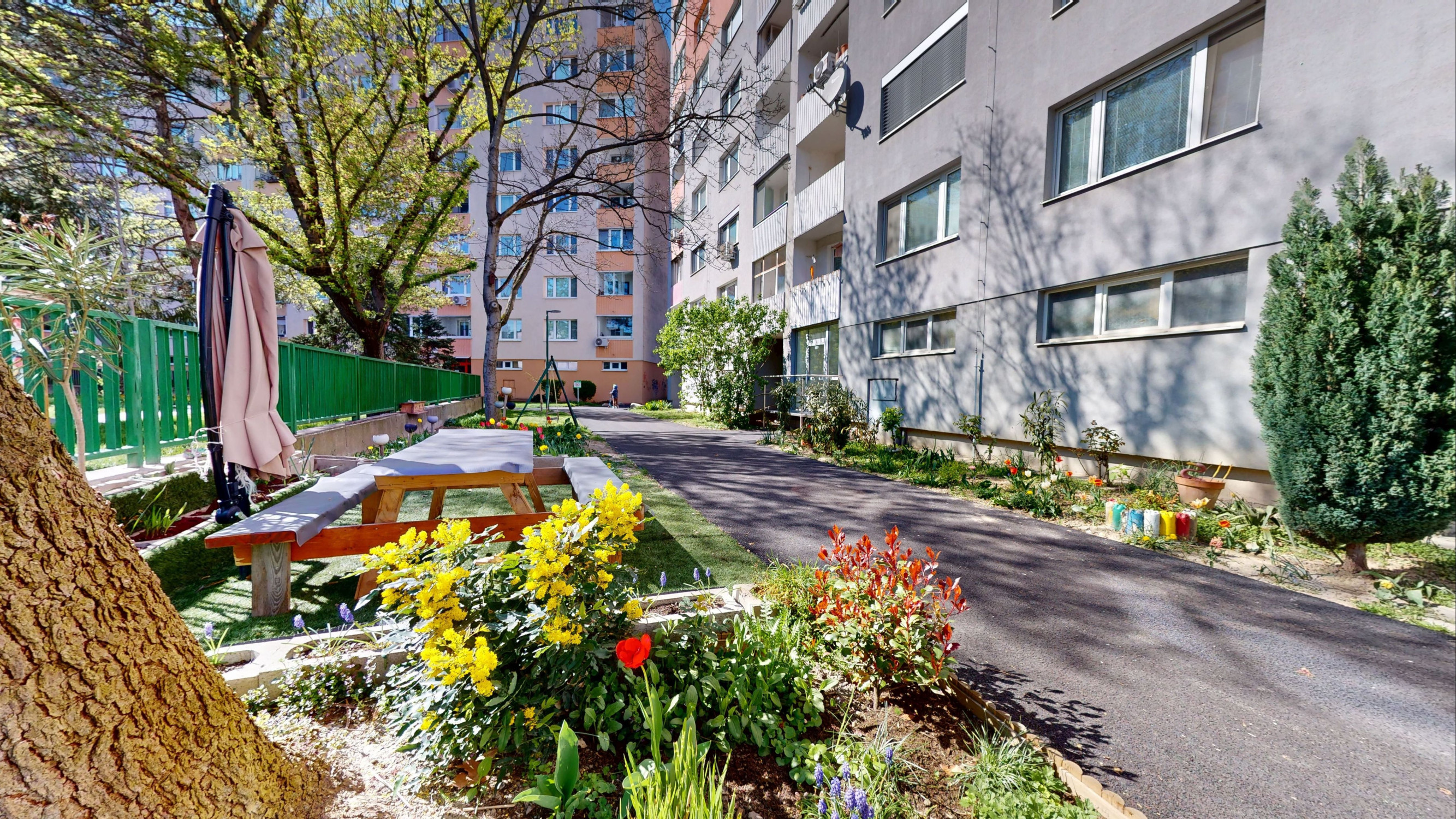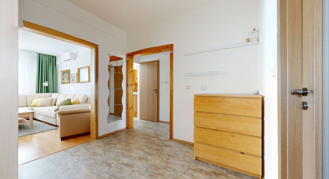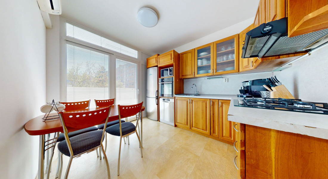 Byt je veľmi priestranný a dvojstranne orientovaný (S – J), z oboch strán do tichého a zeleného vnútrobloku.