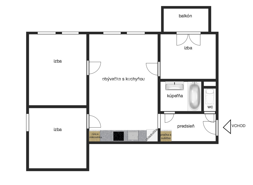 Pozostáva zo 4 izieb, vstupnej chodby, samostatnej kúpeľne, toalety a priestranného balkónu.