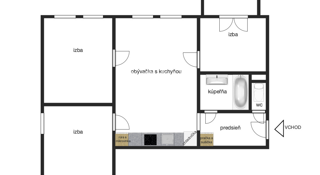 Nová elektroinštalácia aj vodoinštalácia, maľovky aj stierky, nová kúpeľňa, nové podlahy, dlažby a obklady, nové interiérové dvere a svietidlá.
