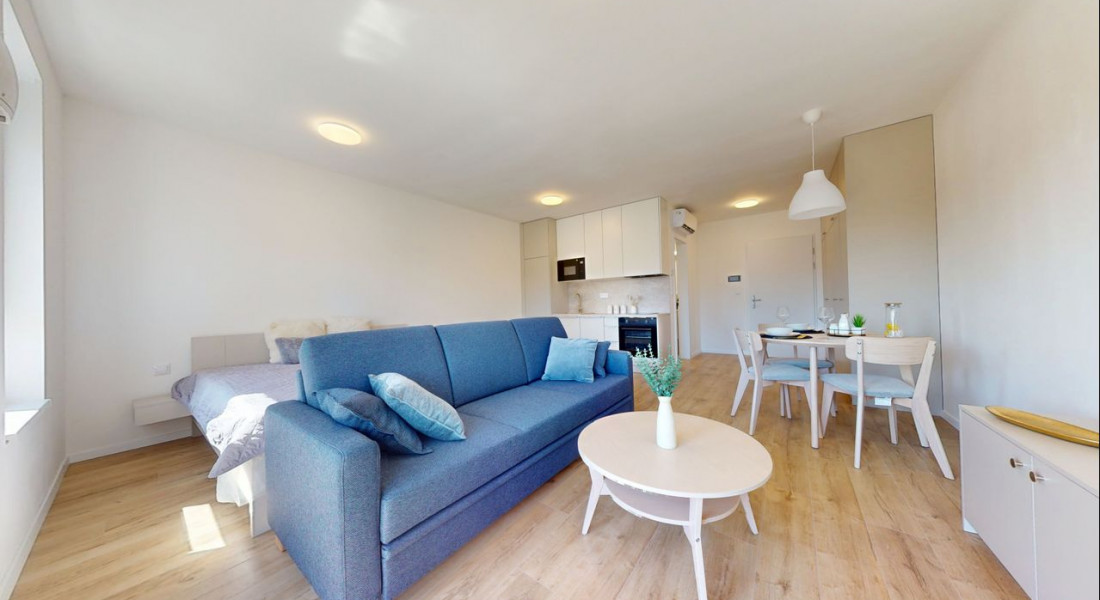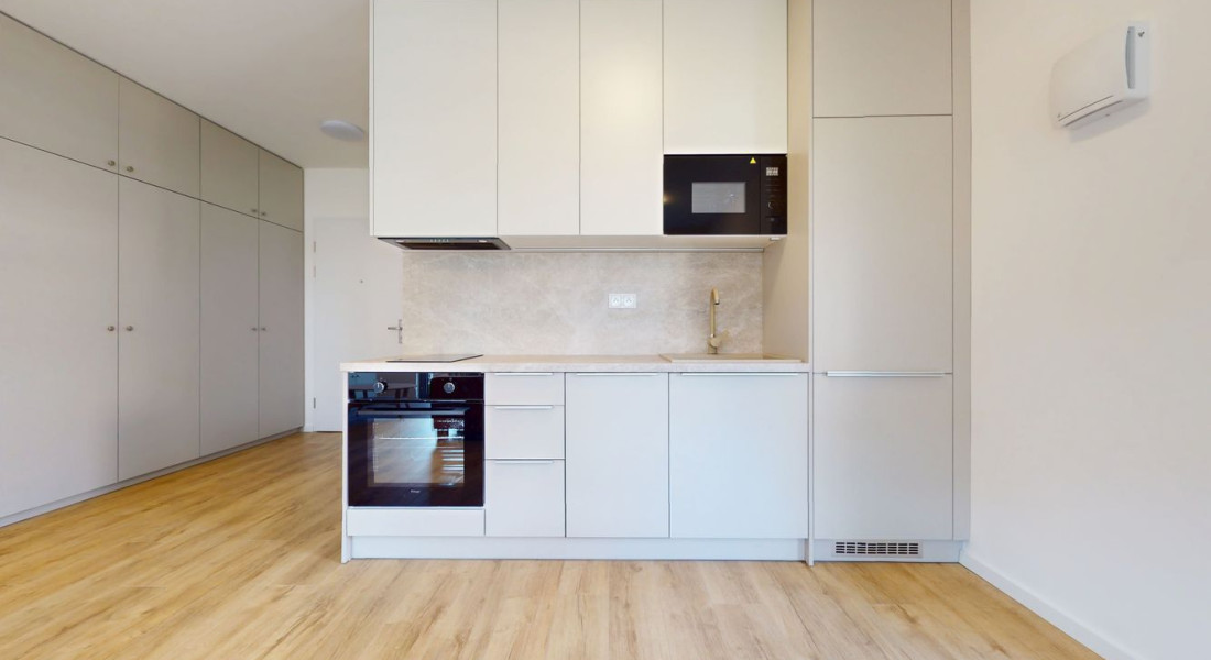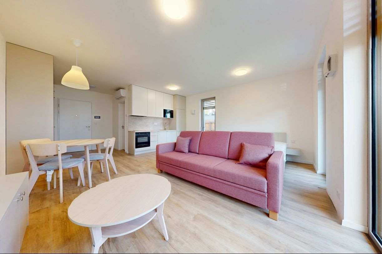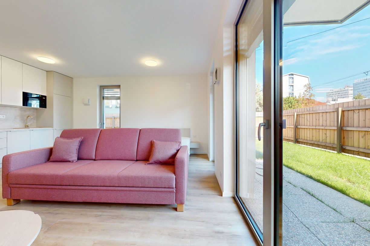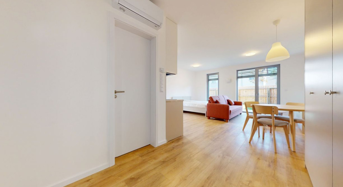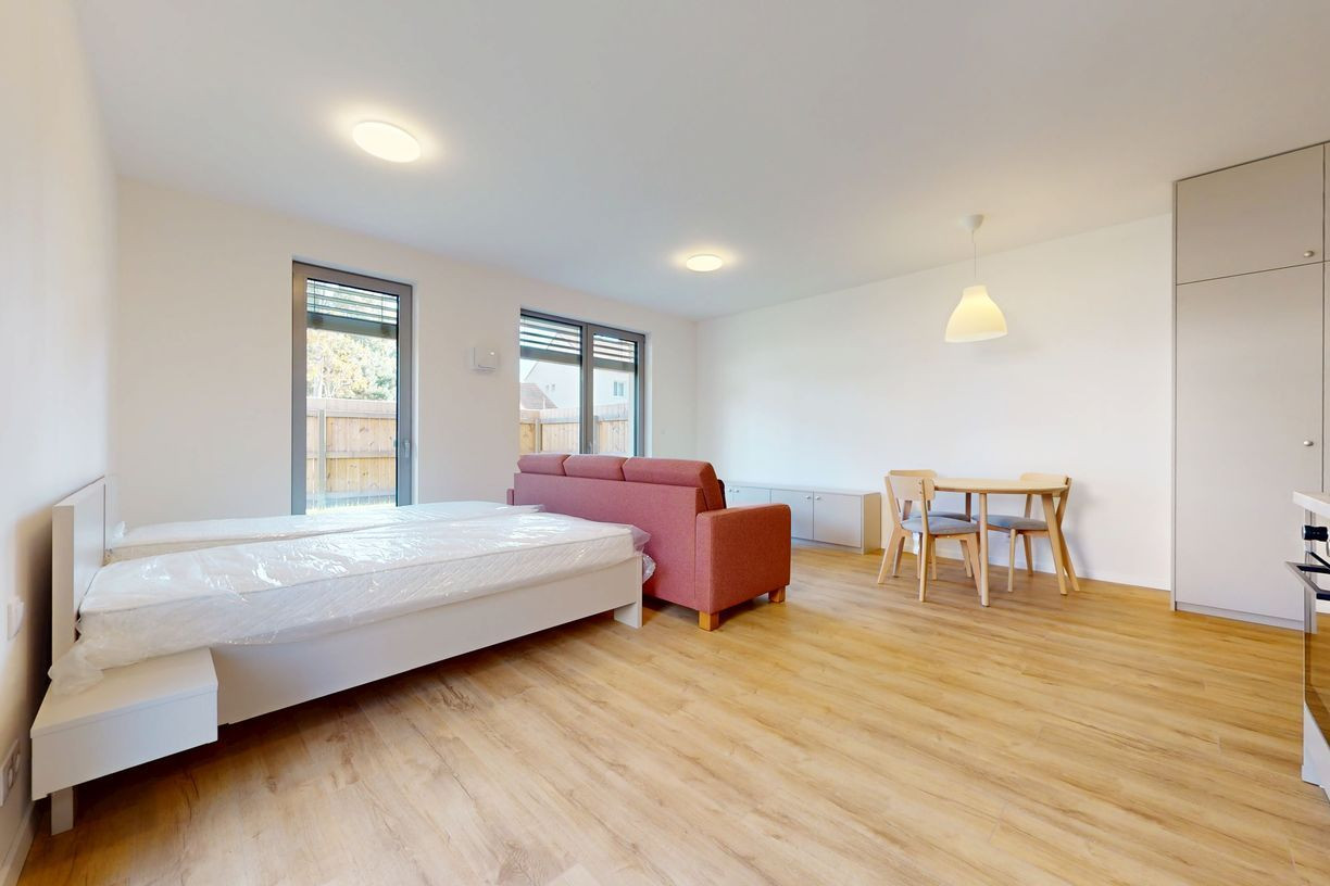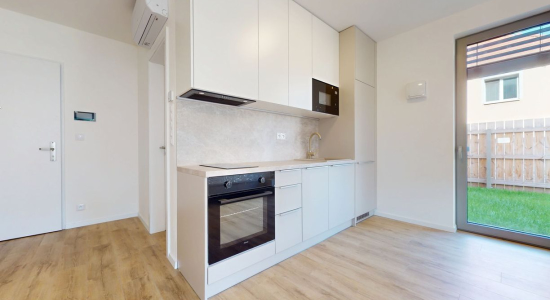 1 izbové byty majú rozlohu okolo 26m² + balkón o výmere 5 m² alebo predzáhradky. Byty sú zariadené novým nábytkom navrhnutým architektami na mieru a v príjemných odtieňoch. Byty sú slnečné, svetlé, priestranné, klimatizované s peknými výhľadmi na okolie. Budova má 4 nadzemné podlažia. Hliníkové veľkometrážne okná s exteriérovými žalúziami. Kuchynská linka plne vybavená spotrebičmi vrátane umývačky riadu a mikrovlnky. Použité moderné a kvalitné materiály. V bytoch je podlahové kúrenie. V kúpeľni je sprchovací kút, umývadlo, toaleta a príprava na práčku. Byty spĺňajú požiadavky náročného klienta.