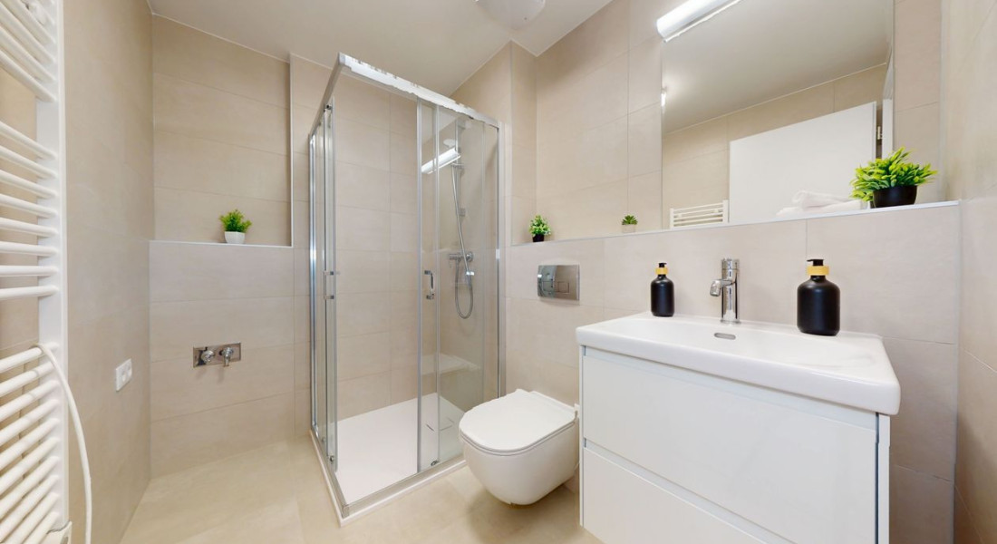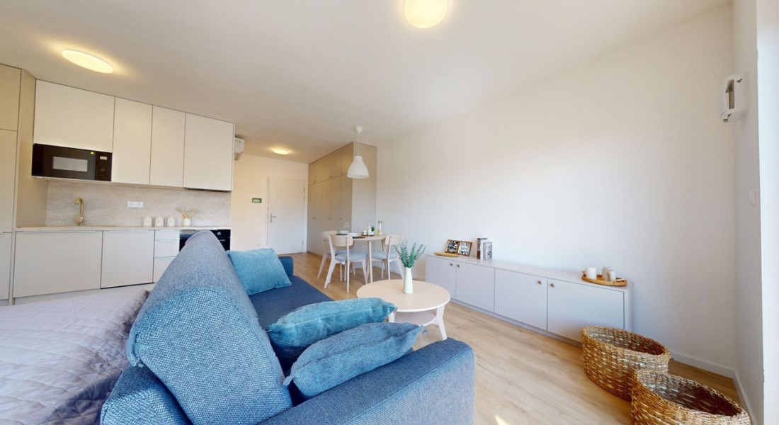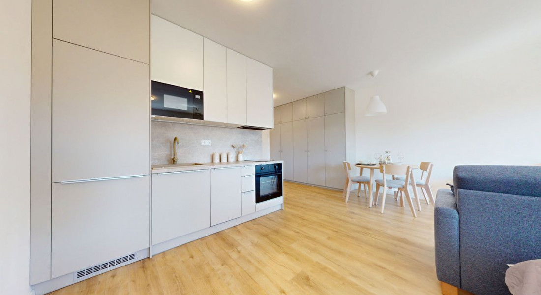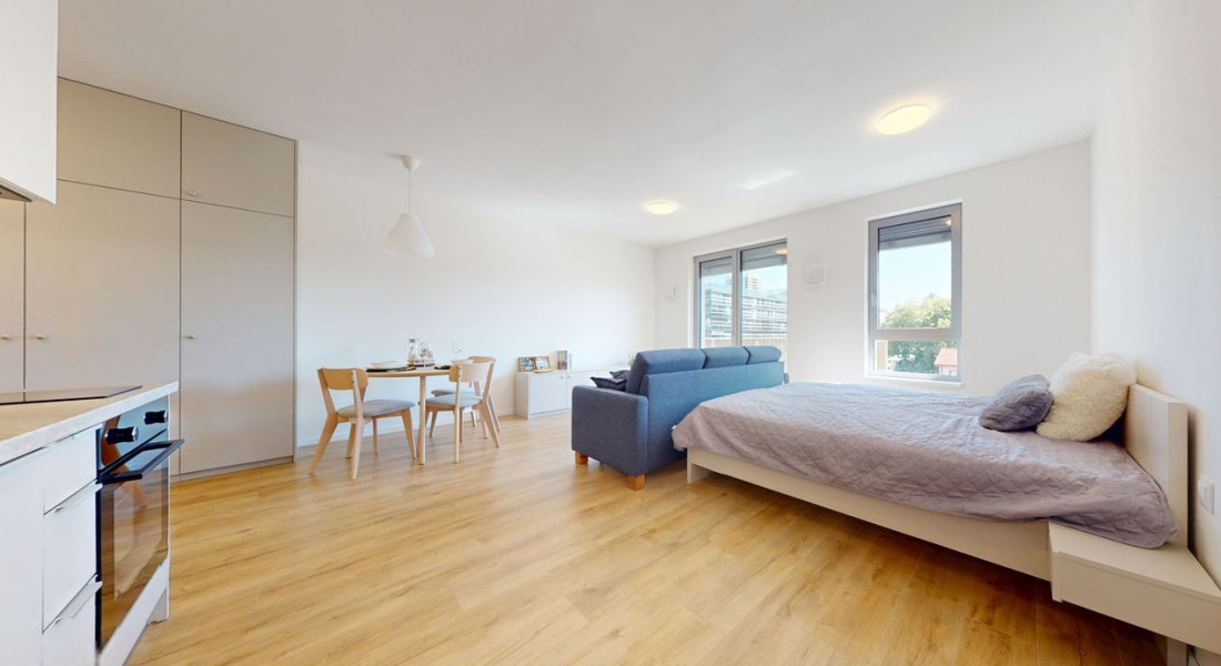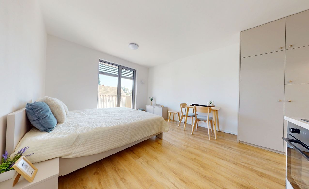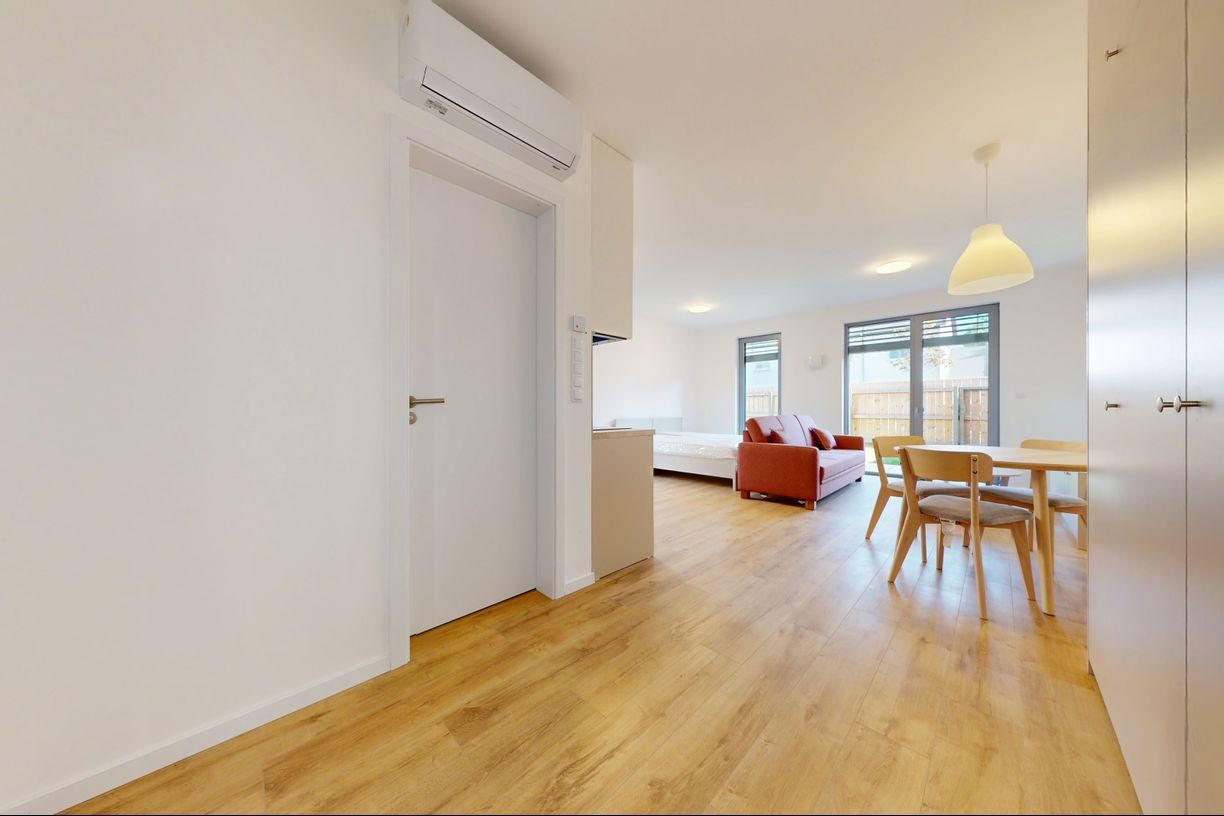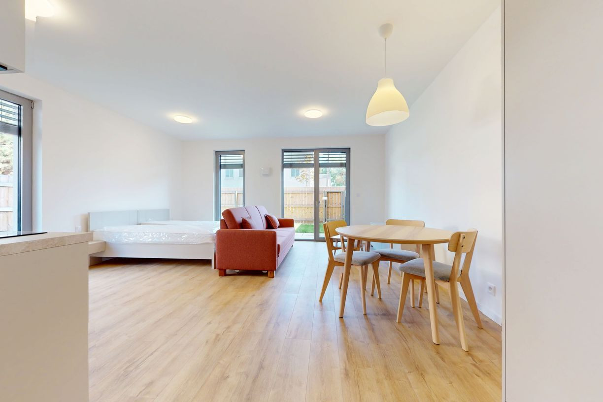 1 izbové byty majú rozlohu okolo 26m² + balkón o výmere 5 m² alebo predzáhradky. Byty sú zariadené novým nábytkom navrhnutým architektami na mieru a v príjemných odtieňoch. Byty sú slnečné, svetlé, priestranné, klimatizované s peknými výhľadmi na okolie. Budova má 4 nadzemné podlažia. Hliníkové veľkometrážne okná s exteriérovými žalúziami. Kuchynská linka plne vybavená spotrebičmi vrátane umývačky riadu a mikrovlnky. Použité moderné a kvalitné materiály. V bytoch je podlahové kúrenie. V kúpeľni je sprchovací kút, umývadlo, toaleta a príprava na práčku. Byty spĺňajú požiadavky náročného klienta.