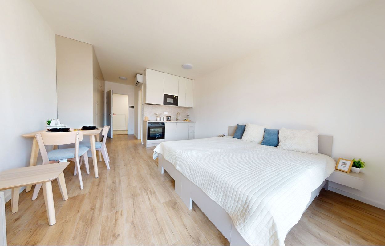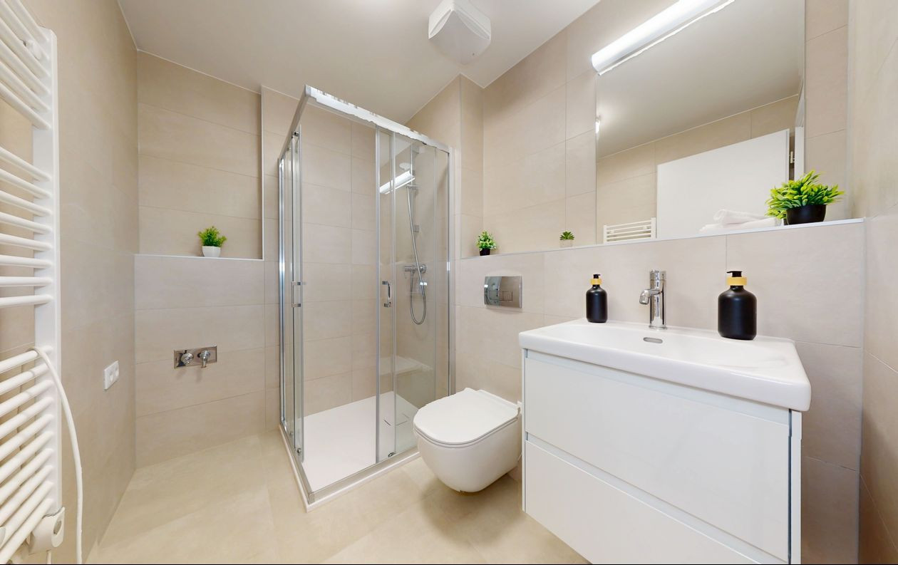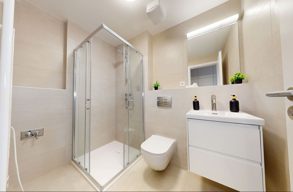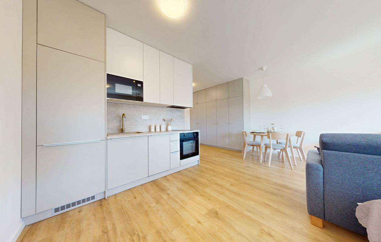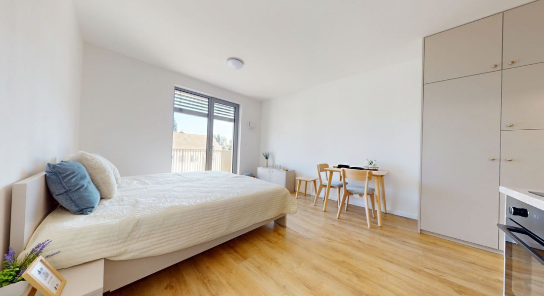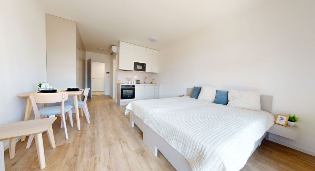 1 izbové byty majú rozlohu okolo 26m² + balkón o výmere 5 m² alebo predzáhradky. Byty sú zariadené novým nábytkom navrhnutým architektami na mieru a v príjemných odtieňoch. Byty sú slnečné, svetlé, priestranné, klimatizované s peknými výhľadmi na okolie. Budova má 4 nadzemné podlažia. Hliníkové veľkometrážne okná s exteriérovými žalúziami. Kuchynská linka plne vybavená spotrebičmi vrátane umývačky riadu a mikrovlnky. Použité moderné a kvalitné materiály. V bytoch je podlahové kúrenie. V kúpeľni je sprchovací kút, umývadlo, toaleta a príprava na práčku. Byty spĺňajú požiadavky náročného klienta.