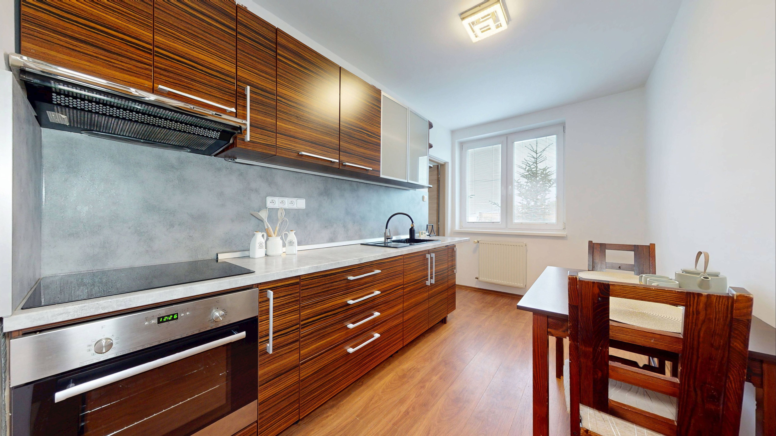 Byt prešiel v roku 2015 kompletnou kvalitnou rekonštrukciou – výmena elektrických rozvodov, rozvodov vody, plynu a odpadu, plastové okná, nové bezpečnostné vstupné dvere, komplet podlahy a zárubne, rovnako aj kúpeľňa a WC. Teplo a teplá voda je zabezpečená prostredníctvom kvalitného plynového kotla Protherm Tiger. Byt má samostatné odpočty energií.