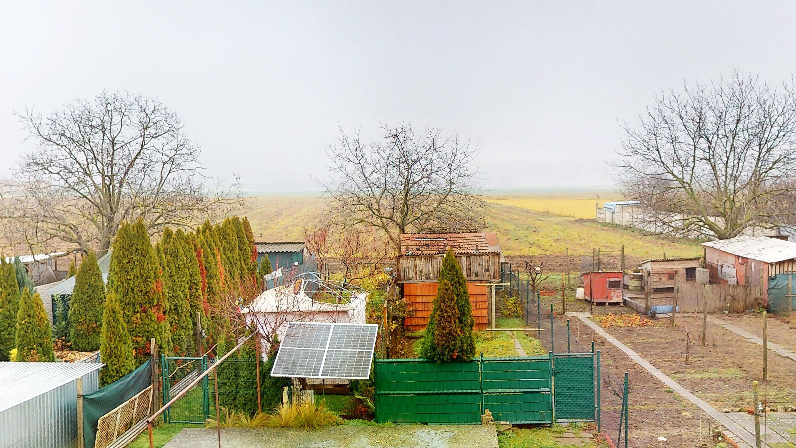 Pred bytovým domom sa nachádza záhrada o výmere 90m2 so slnečným kolektorom (vlastník mal na pozemku menší bazén) prislúchajúca k bytu.