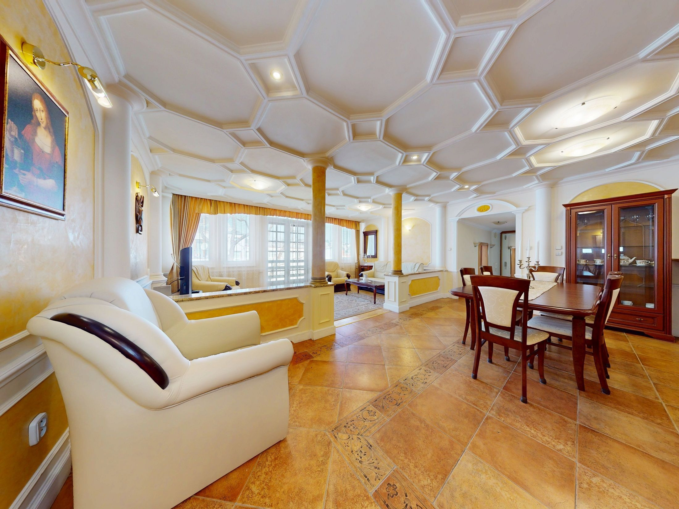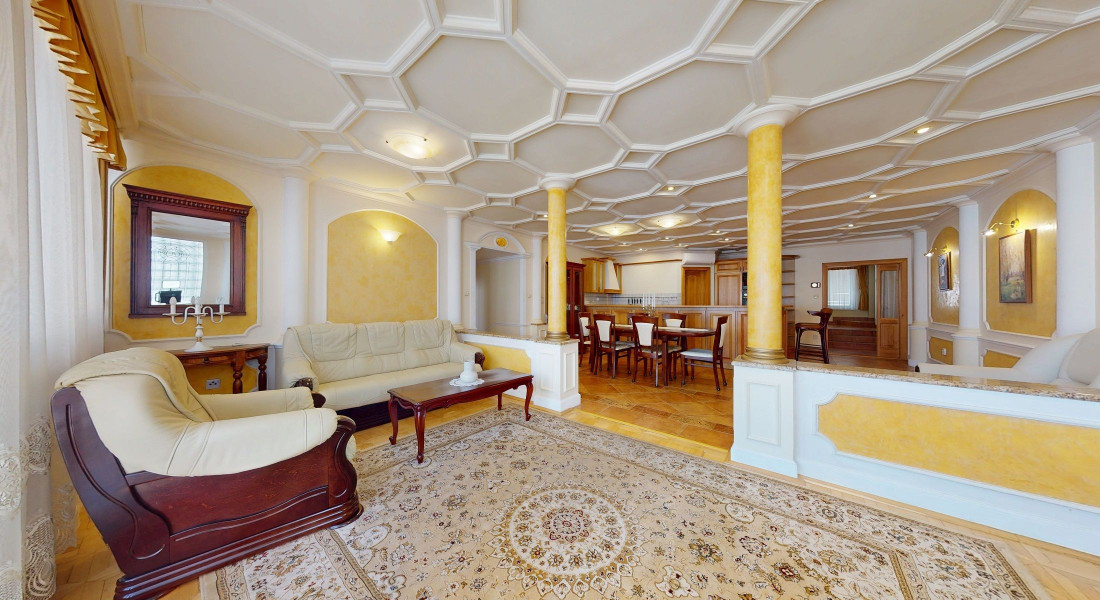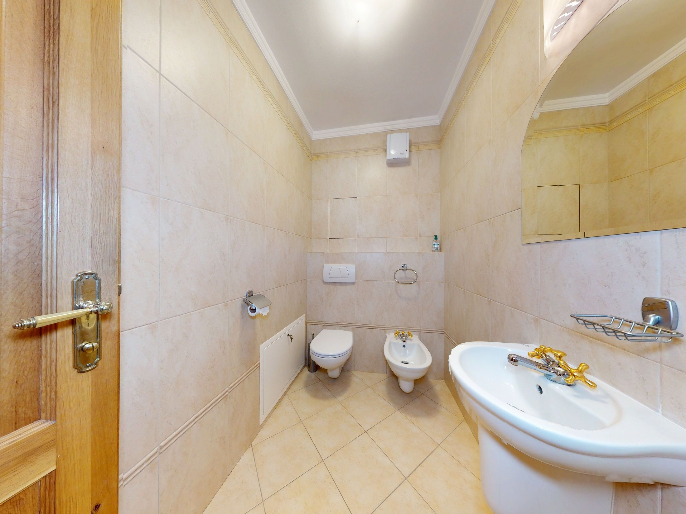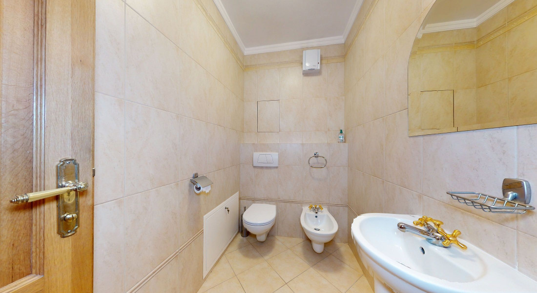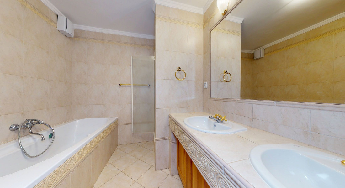 Dispozícia: 4 izby (priestranná obývacia izba prepojená s kuchyňou + 3 samostatné izby), dostatok úložného priestoru, spálňa s výstupom na zasklennú zimnú záhradu s posedením, veľkorysý vstup, kúpeľňa s vaňou a sprchovým kútom, WC s bidetom a umývadlom.