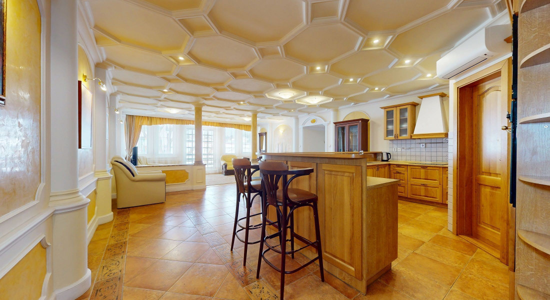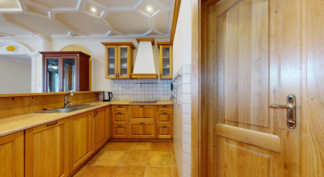 Interiér: Rustikálne zariadený, kvalitné materiály, kuchynská linka so všetkými spotrebičmi, dostatok úložného priestoru.