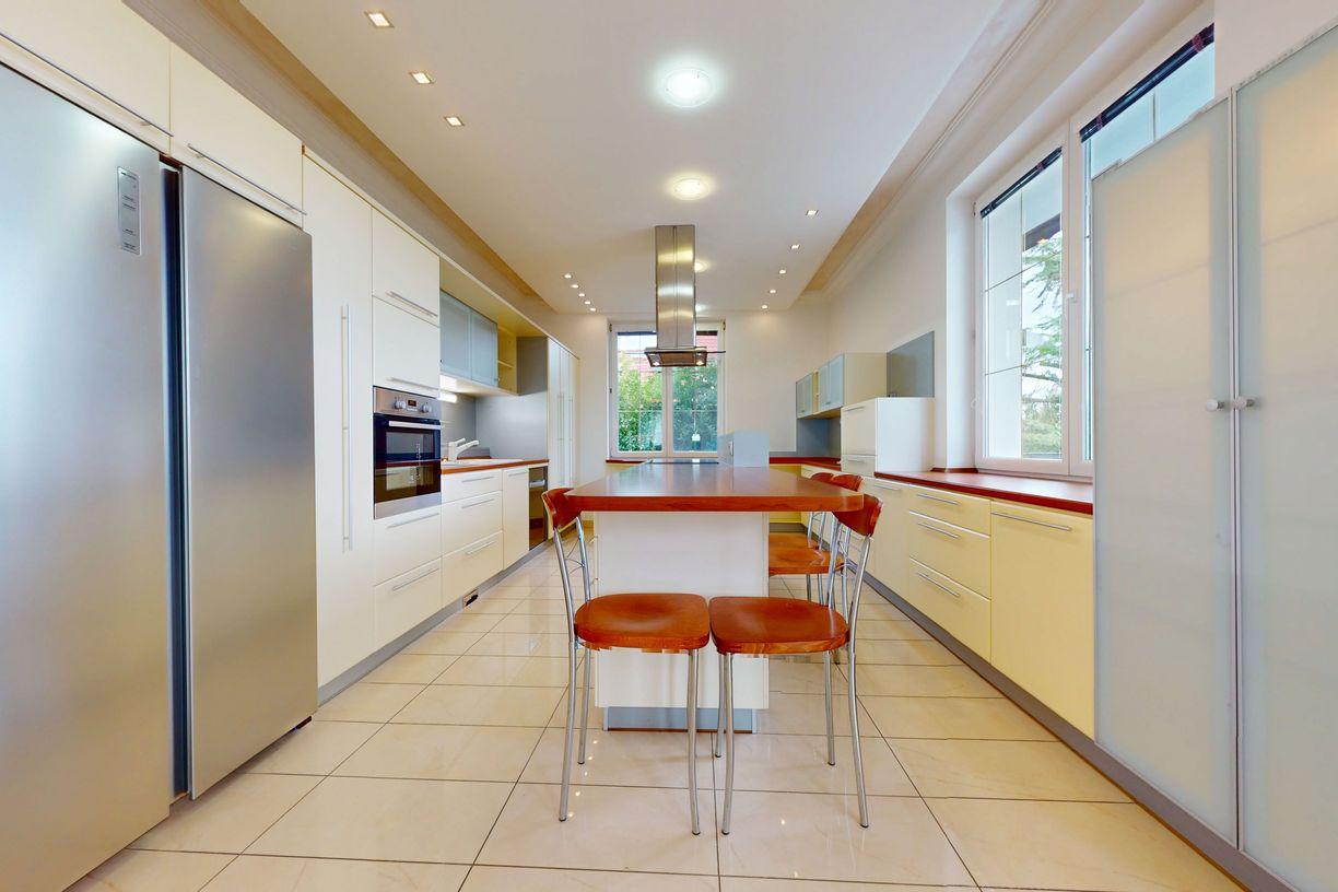 Dom s úžitkovou plochou 600 m² je postavený na rozľahlom pozemku s výmerou 1 200 m² a ponúka maximálne súkromie, komfort, krásne miesto na bývanie i oddych. Disponuje 8 miestnosťami, 4 kúpeľňami, vnútorným bazénom, saunou, zimnou záhradou, vínnou pivnicou, krásne upravenou záhradou a mnohými ďalšími výhodami vhodnými pre rodinné bývanie.