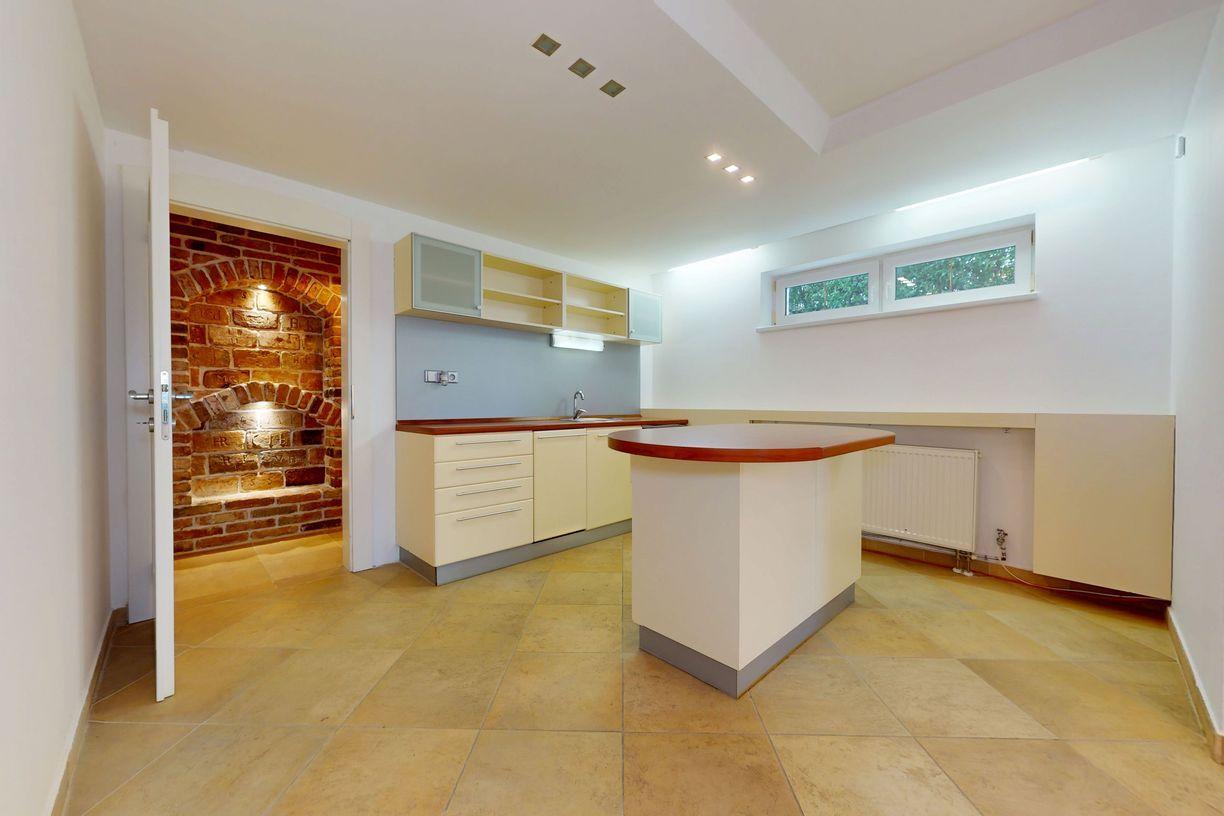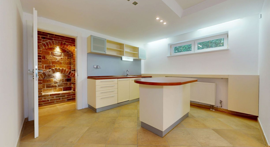 • veľkorysá obývacia izba s krbom, spojená s kuchyňou a jedálenským kútom,