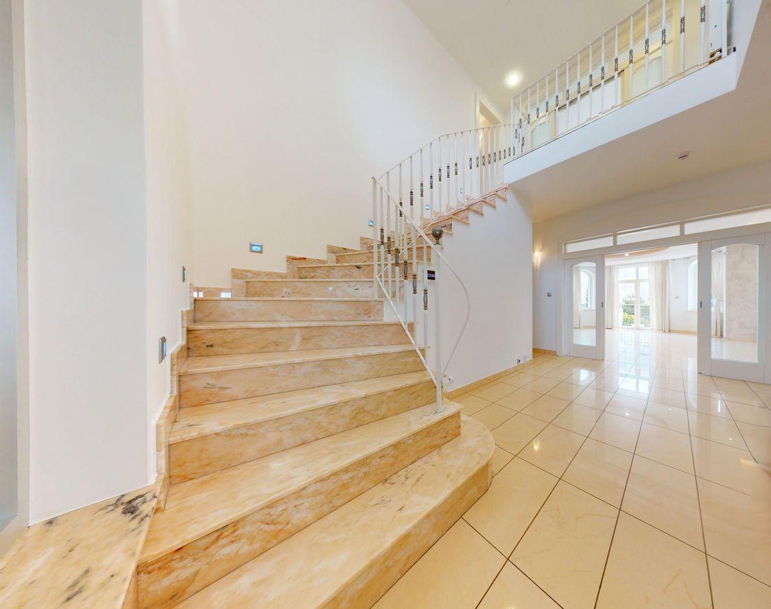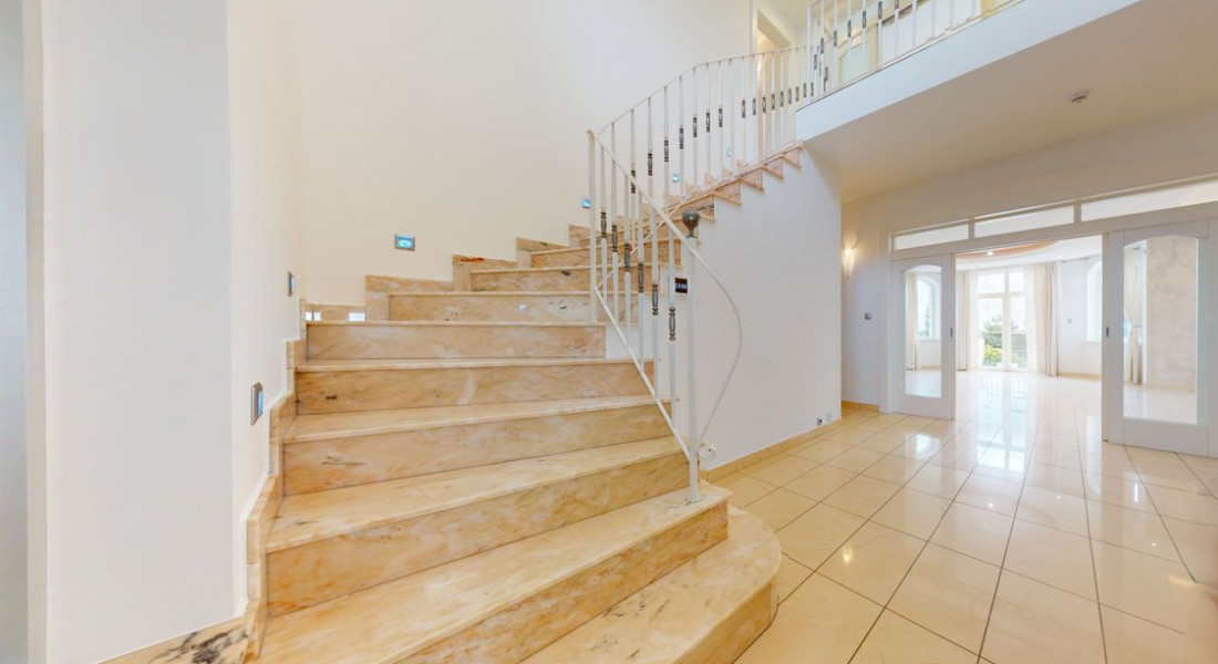 • elegantné schodisko obložené prírodným kameňom Portuguese Rosso,