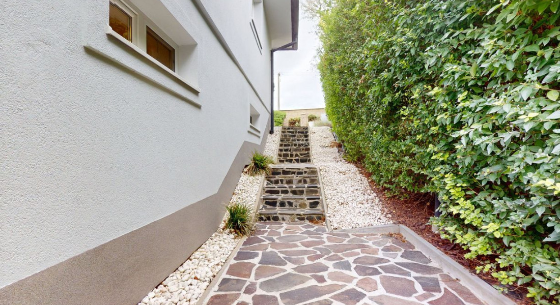 NNDom má krásne vysadenú záhradu s okrasnými a ovocnými stromami, detské ihrisko, vyvýšené záhony na zeleninu a záhradnú terasu na barbecue. Pokojné prostredie pod vinicami, rozsiahle súkromie, moderné vybavenie a dokonalé zázemie pre rodinný život, relax aj spoločenské aktivity.