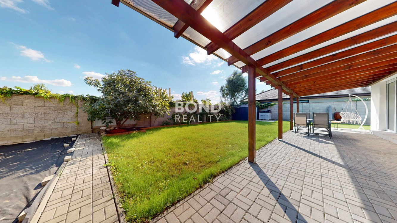 Z obývačky sa vychádza priamo na lexanom plne prestrešenú terasu s výhľadom na zrevitalizovanú záhradu, ktorá disponuje automatickou závlahou čerpajúcou vodu z vlastnej studne.