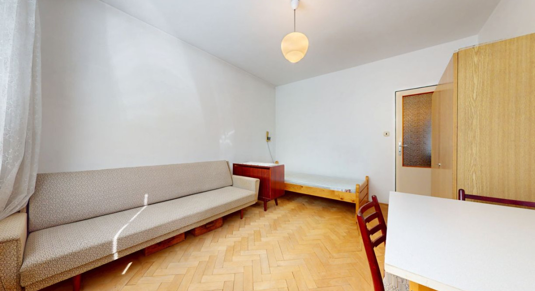 Byt s celkovou výmerou 58,8 m² + 3,3 m² pivnica sa nachádza na 1. poschodí bytového domu s výťahom. Dispozícia je veľmi praktická – pozostáva zo vstupnej chodby, samostatnej kúpeľne, toalety, kuchyne, spálne a obývacej izby s balkónom.