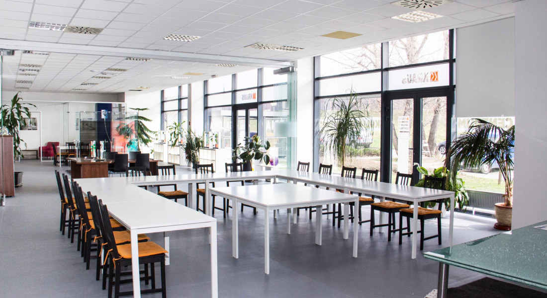 Pôvodný priestor ako celok je aktuálne sadrokartónovými priečkami rozdelený na dve časti. Prvá časť pozostáva z obchodného showroomu a kancelárskych priestorov so sociálnym zázemím. Druhá časť je aktuálne využívaná ako skladový priestor, predtým bola využívaná ako školiace centrum. Obe časti sú vzájomne interiérovo prepojené, resp. každá má samostatný exteriérový vstup.
