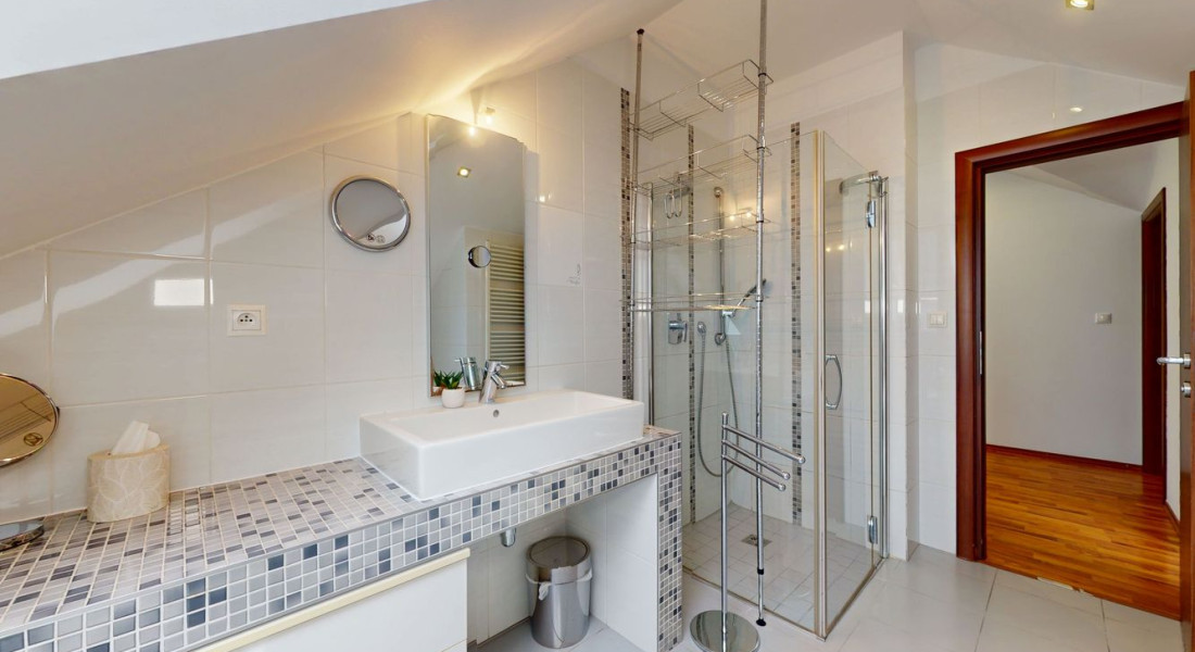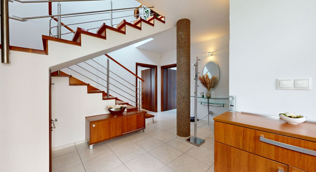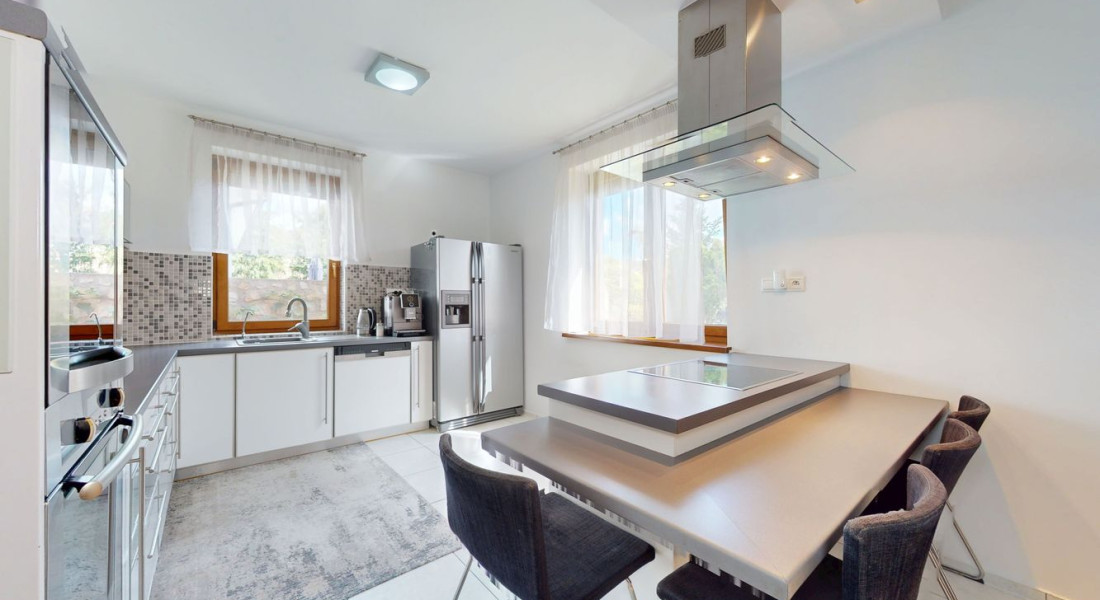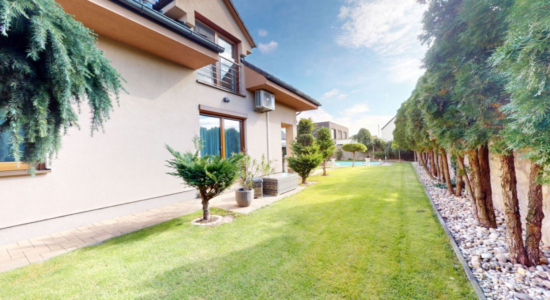 Realitná kancelária BOND Reality ponúka na predaj poschodový 5-izbový rodinný dom v Moste pri Bratislave, časť Studené. DOM: - Kolaudácia 2004 - Tehla + zateplenie polystyrén - Škridla - Plastové okná - Vonkajšie elektrické žalúzie - Kamerový systém - Alarm - Optika - Všetky inžinierske siete + vlastná studňa - Plynové podlahové teplovodné kúrenie - Klimatizácia - Krb s prieduchmi do izieb na poschodí - Dubové schodisko - Vykurovaná dvojgaráž - Úžitková plocha 216,3m2 Mesačné náklady: - plyn 100€ - elektrina 120€ - voda 15€ DISPOZIČNÉ RIEŠENIE: Prízemie - Úžitková plocha 107,9m2 - Vstupná hala - Samostatná kuchyňa a komorou - Obývačka - wc - Prechod do garáže Poschodie - Úžitková plocha 108,4m2 - Spálňa s dvomi šatníkmi - 3 samostatné izby - Kúpeľňa s wc - Samostatné wc - Chodba Vo fotodokumentácii je priložený pôdorys. POZEMOK: - 800m2 - Oplotenie – Devínsky múr - Elektrická brána - Prístrešok pre tri autá - Parková úprava - Studňa - Automatická závlaha - Automatická kosačka - Bazén 8 x 4m s automatickým dávkovaním Ph - Altán - Vonkajší krb LOKALITA: V obci sa nachádza kompletná občianska vybavenosť, zároveň ponúka celoročné športové vyžitie. Výborné podmienky na oddych a relax. BILLA, LIDL, Samoška, mäsiar, zelovoc, pošta, lekáreň, zdravotné stredisko, zubár, MEDIKLINIK, stavebniny, reštaurácie, cukráreň. Rýchla dopravná dostupnosť do Bratislavy vďaka novovybudovaným rýchlostným cestám a diaľničnému úseku D4, zastávka prímestských liniek, cyklotrasy, prírodné jazerá Košariská, Zelená voda. ODPORÚČAM OBHLIADKU Text a fotografie sú autorským dielom a majetkom realitnej kancelárie BOND Reality.