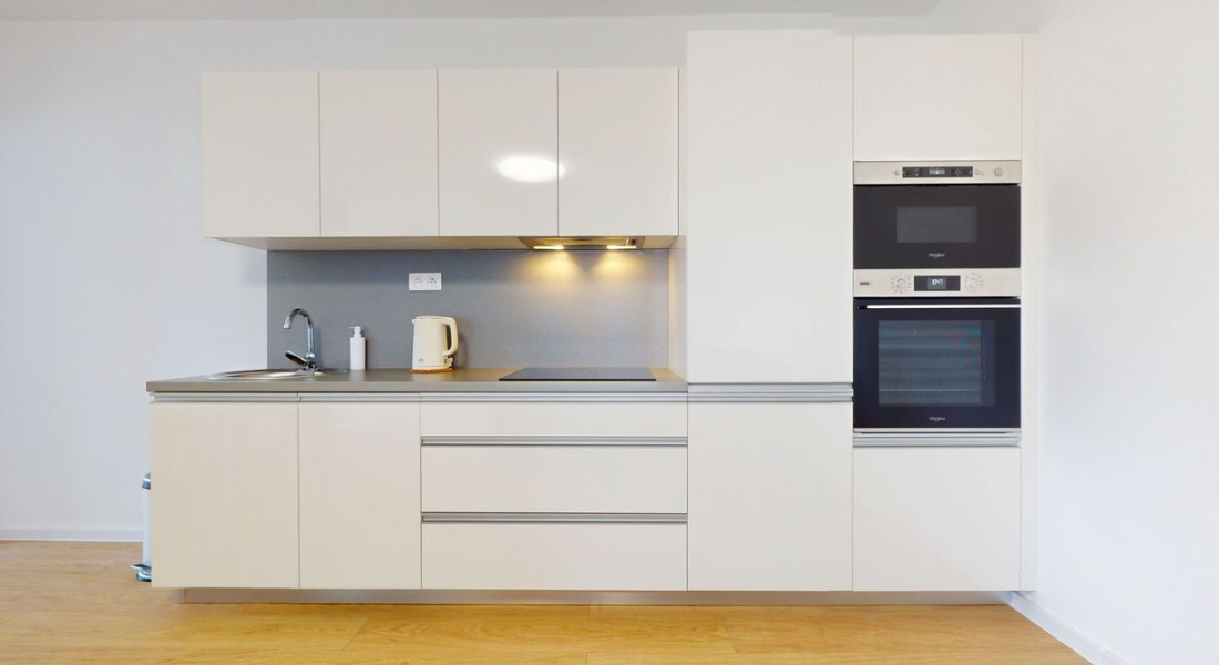 Dispozične pozostáva zo vstupnej chodby, priestrannej obývacej izby s veľkoformátovými oknami a otvoreným prechodom do kuchynskej časti, ktorá je vybavená kuchynskou linkou na mieru so vstavanými spotrebičmi. ( umývačka riadu, varná doska, digestor, elektrická rúra, mikrovlnná rúra )