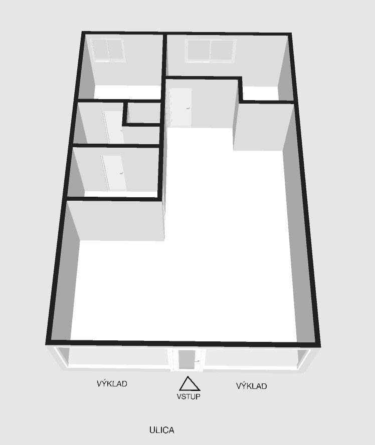 Priestor má pravidelný obdĺžnikový tvar a po celej šírke veľký presklený výklad orientovaný do frekventovanej ulice.