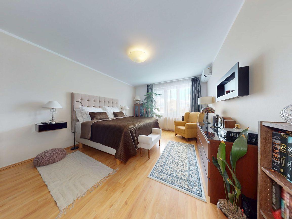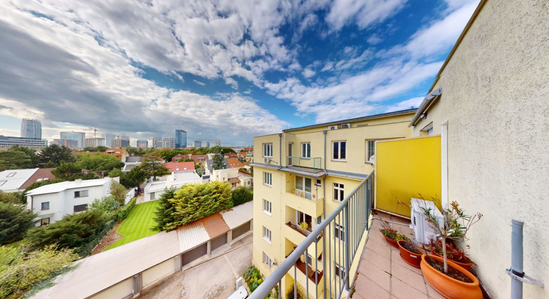 Vrchné podlažie tvoria tri samostatné izby, pričom jedna s výstupom na balkón orientovaný do vnútrobloku, ďalšej kúpeľne a šatníka. Miestnosti vo vrchnom podlaží i napriek tomu, že je to podkrovie majú plnohodnotnú svetlosť bez zošikmení typických pre podkrovné byty a mezonety z dôvodu sklonu strechy.