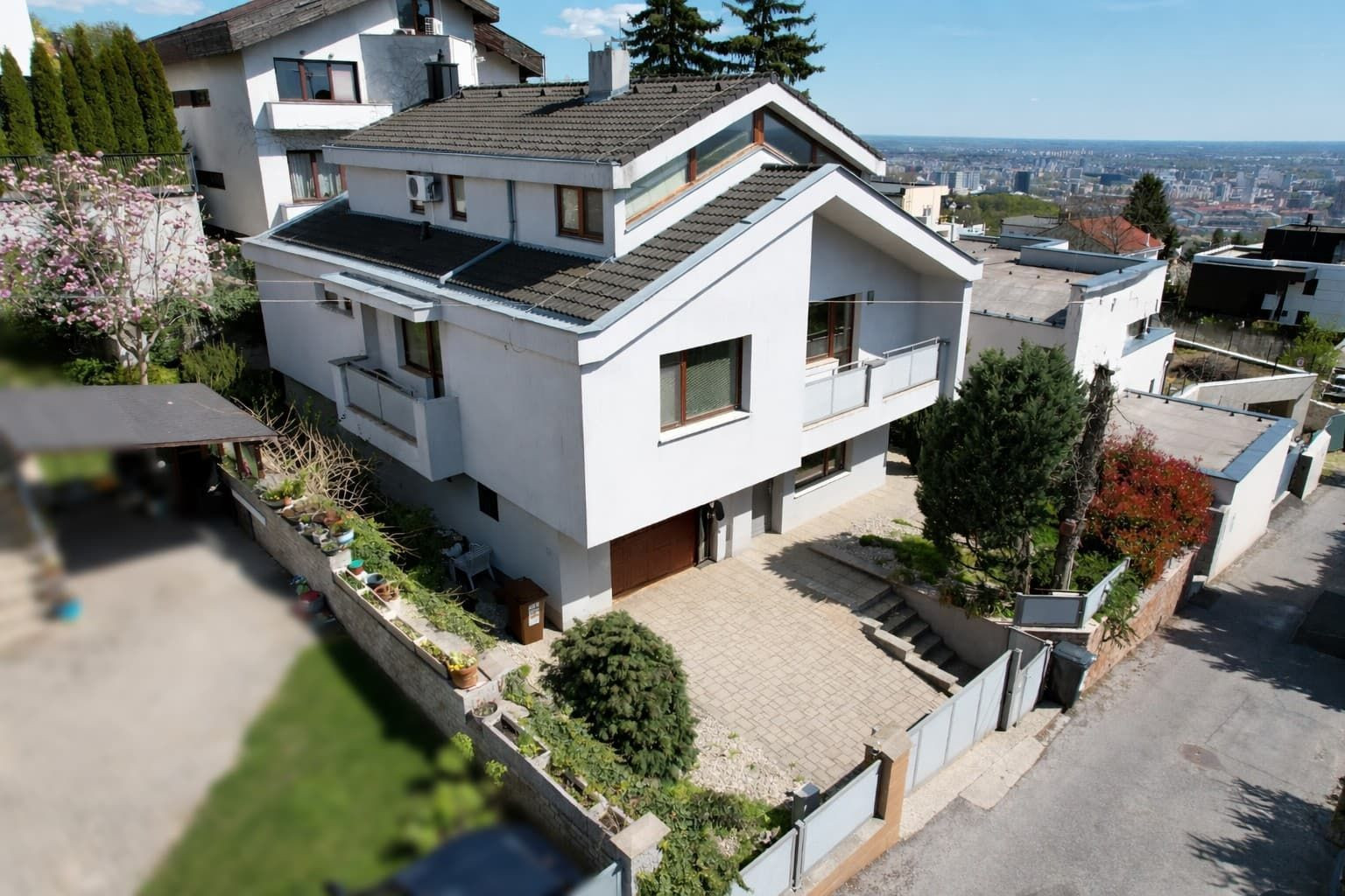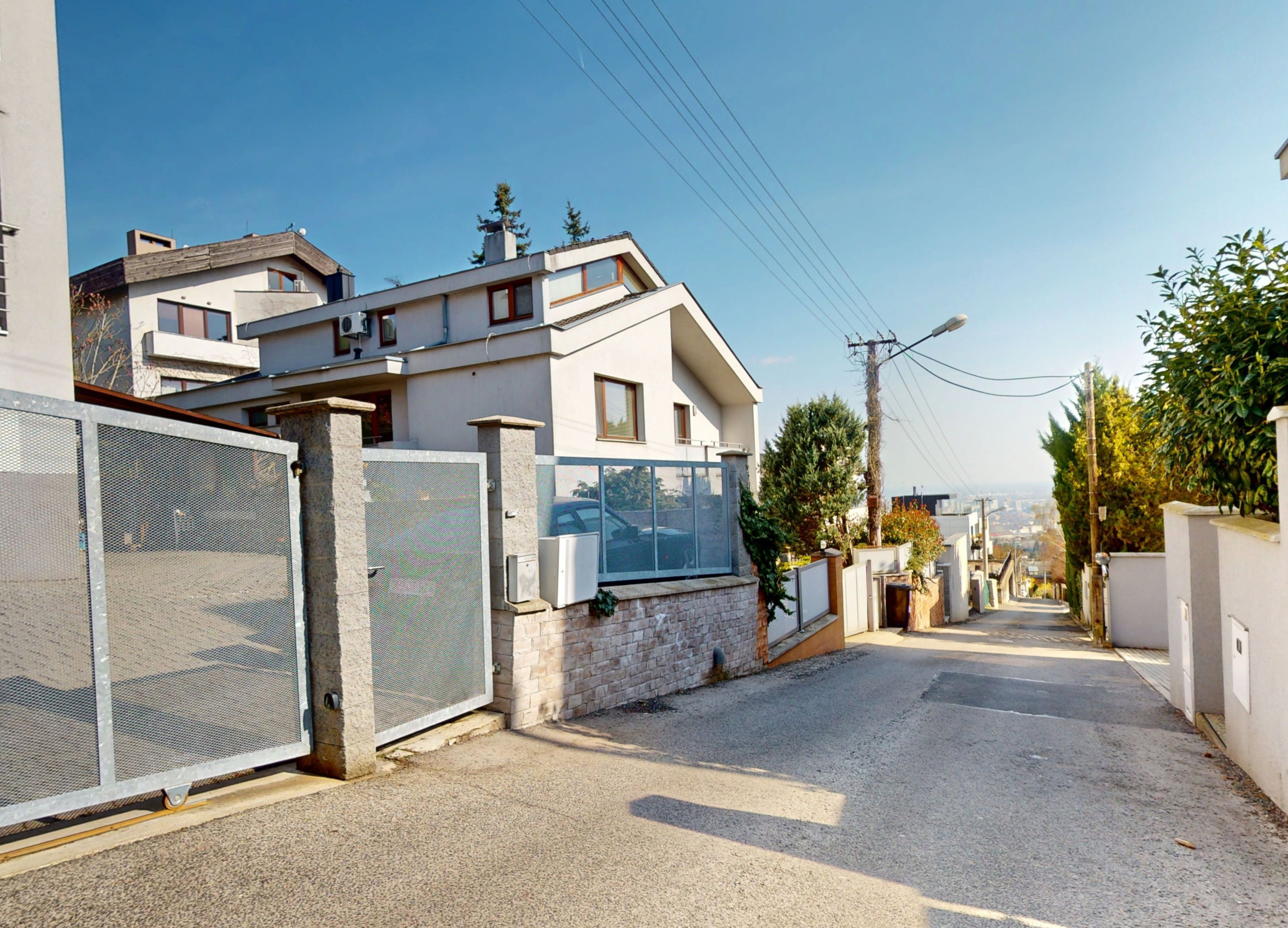 Garáž je prepojená s domom, suchou nohou do domu. Vonkajšia brána a aj garážová brána sú na elektrické ovládanie. Rodinný dom má alarm napojený na bezpečnostnú službu.
