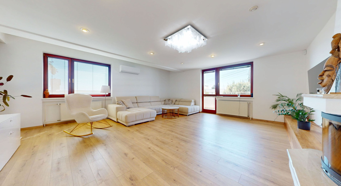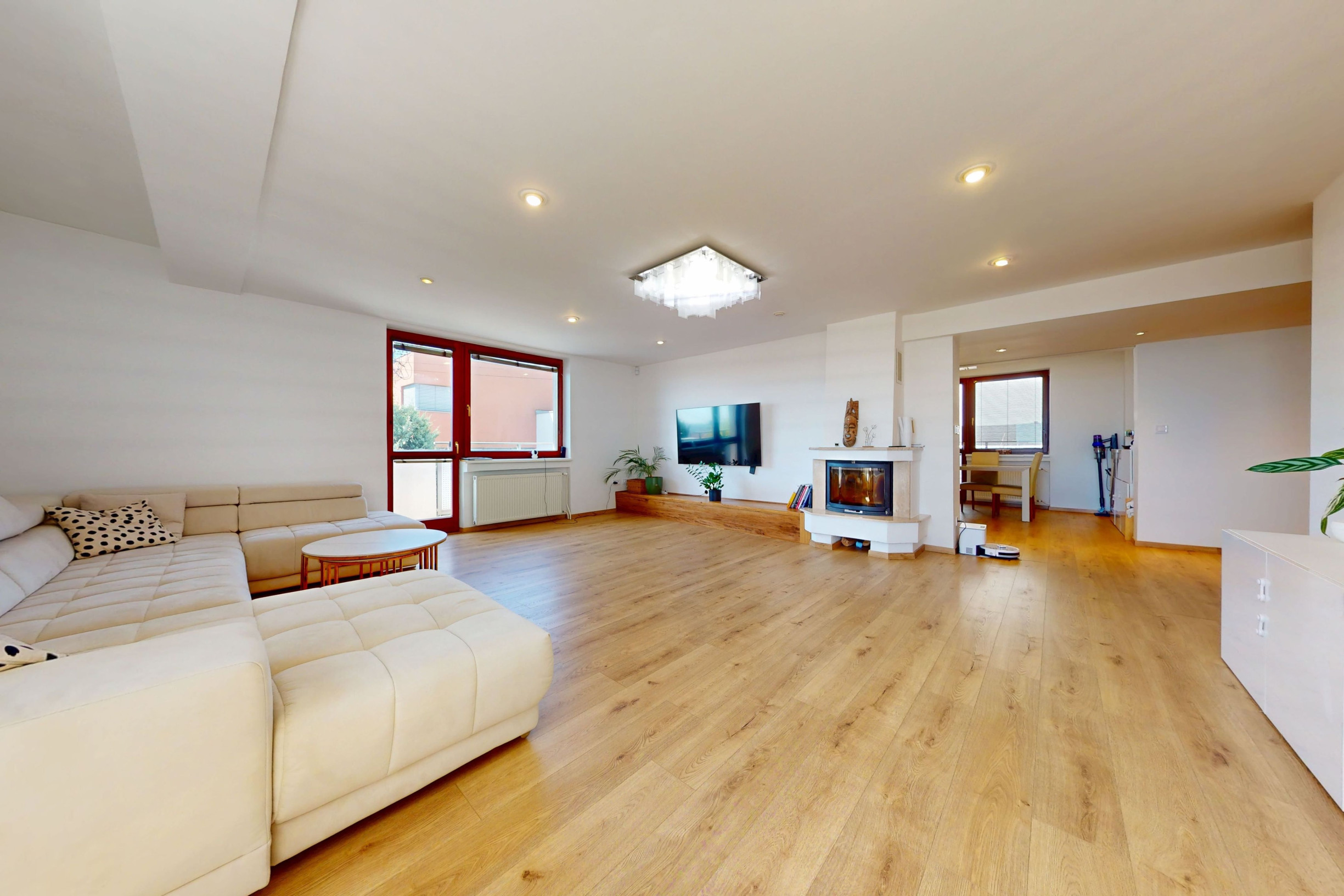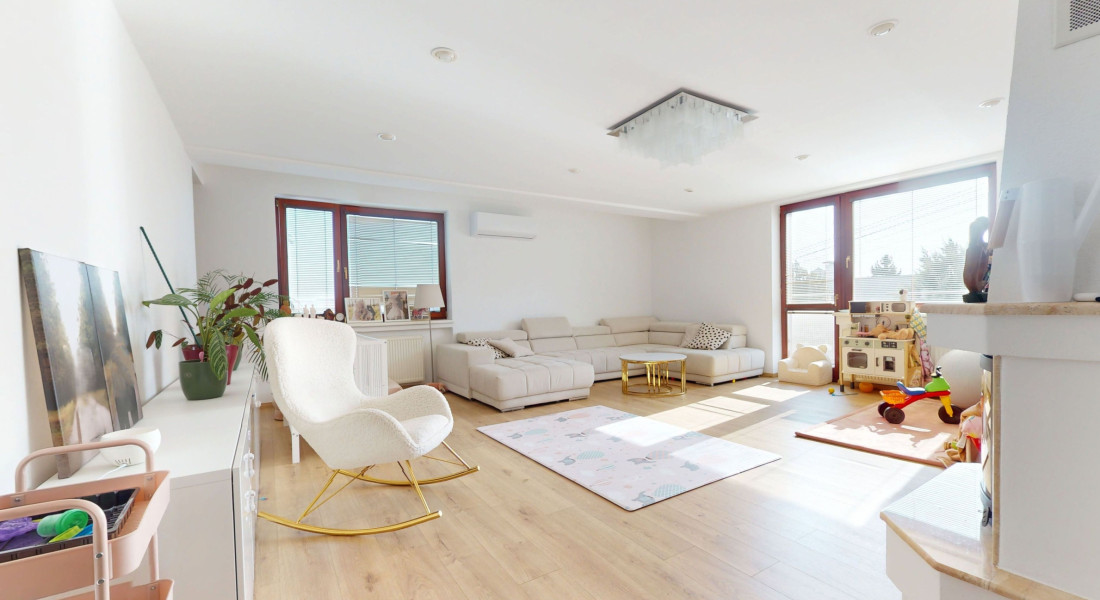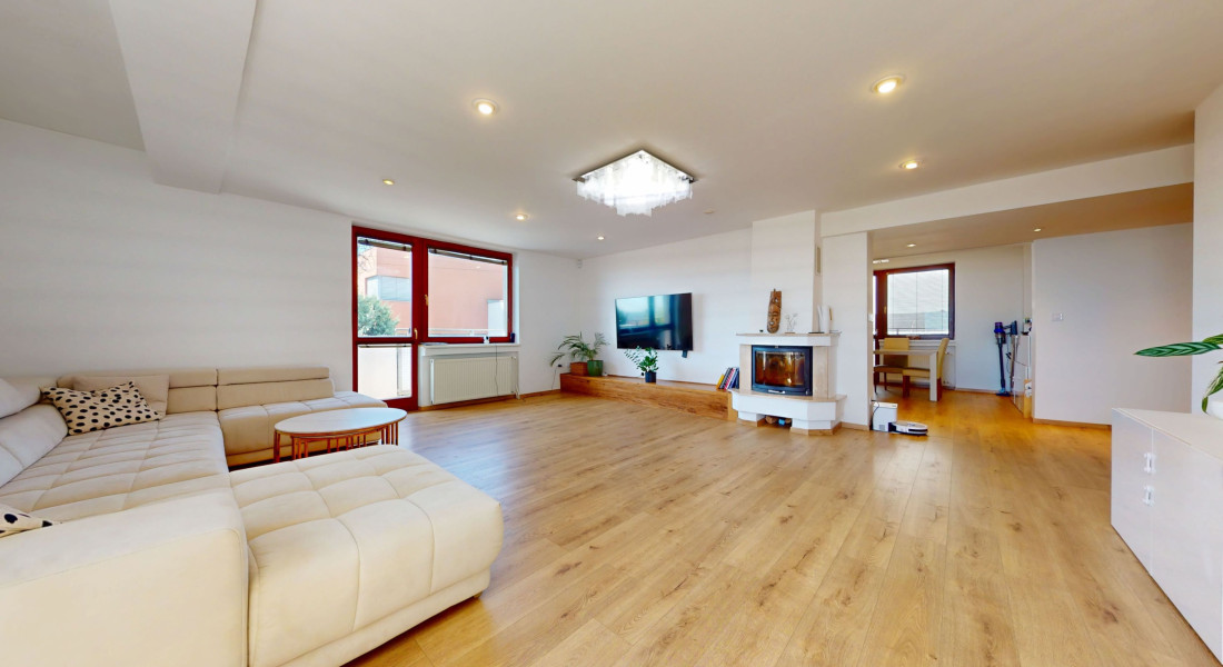 - veľkorysá obývacia izba s krbom a výstupom na balkón