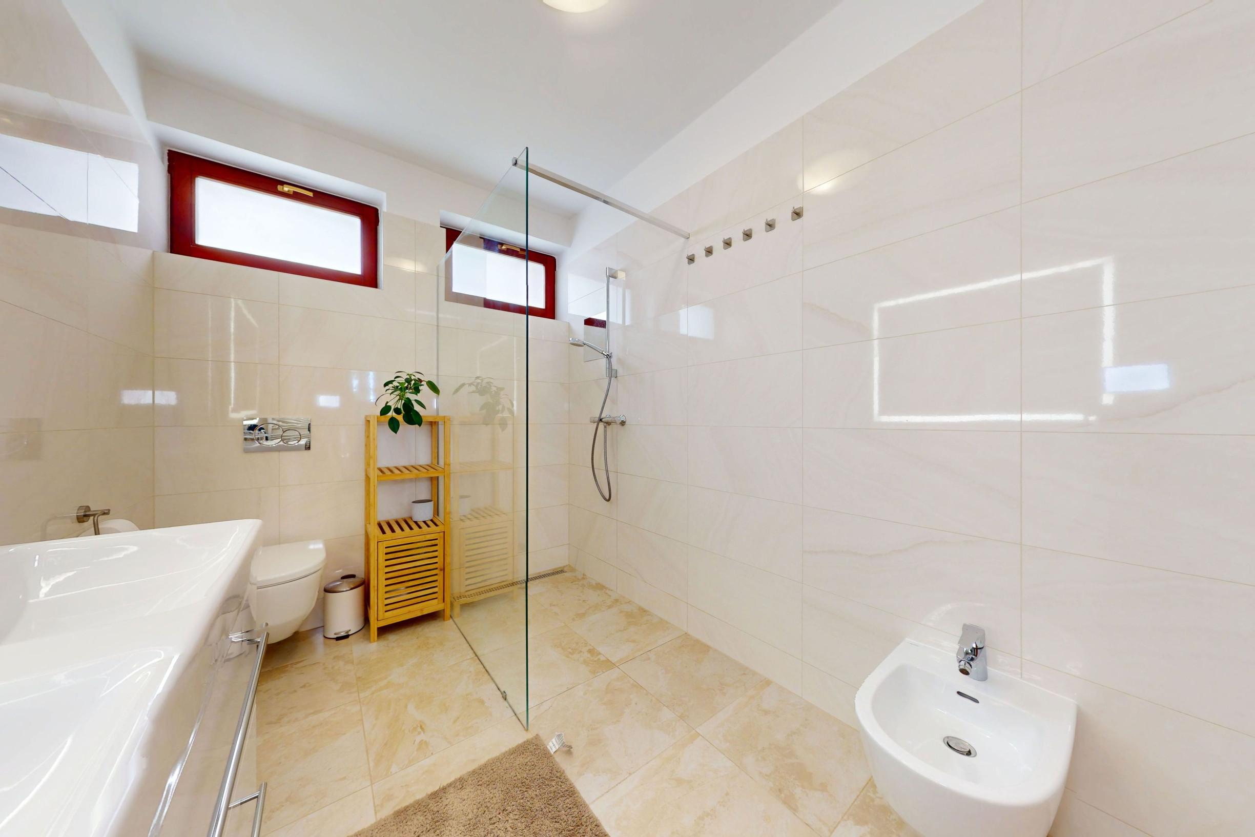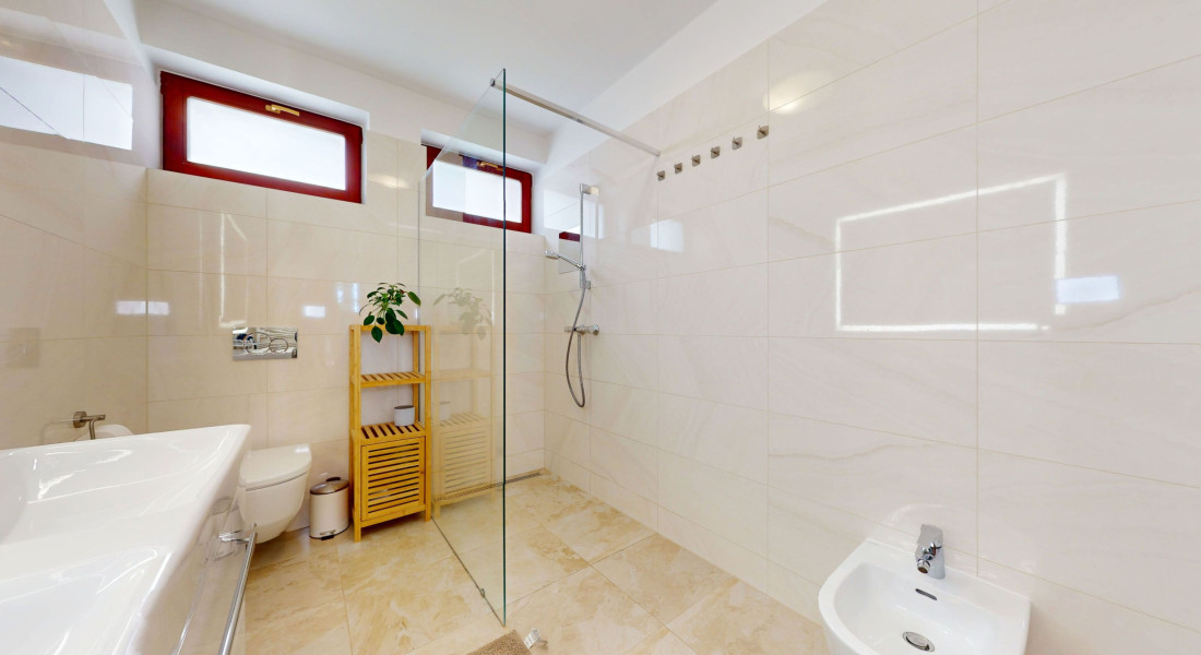 - kúpeľňa so sprchovacím kútom, toaletou a bidetom