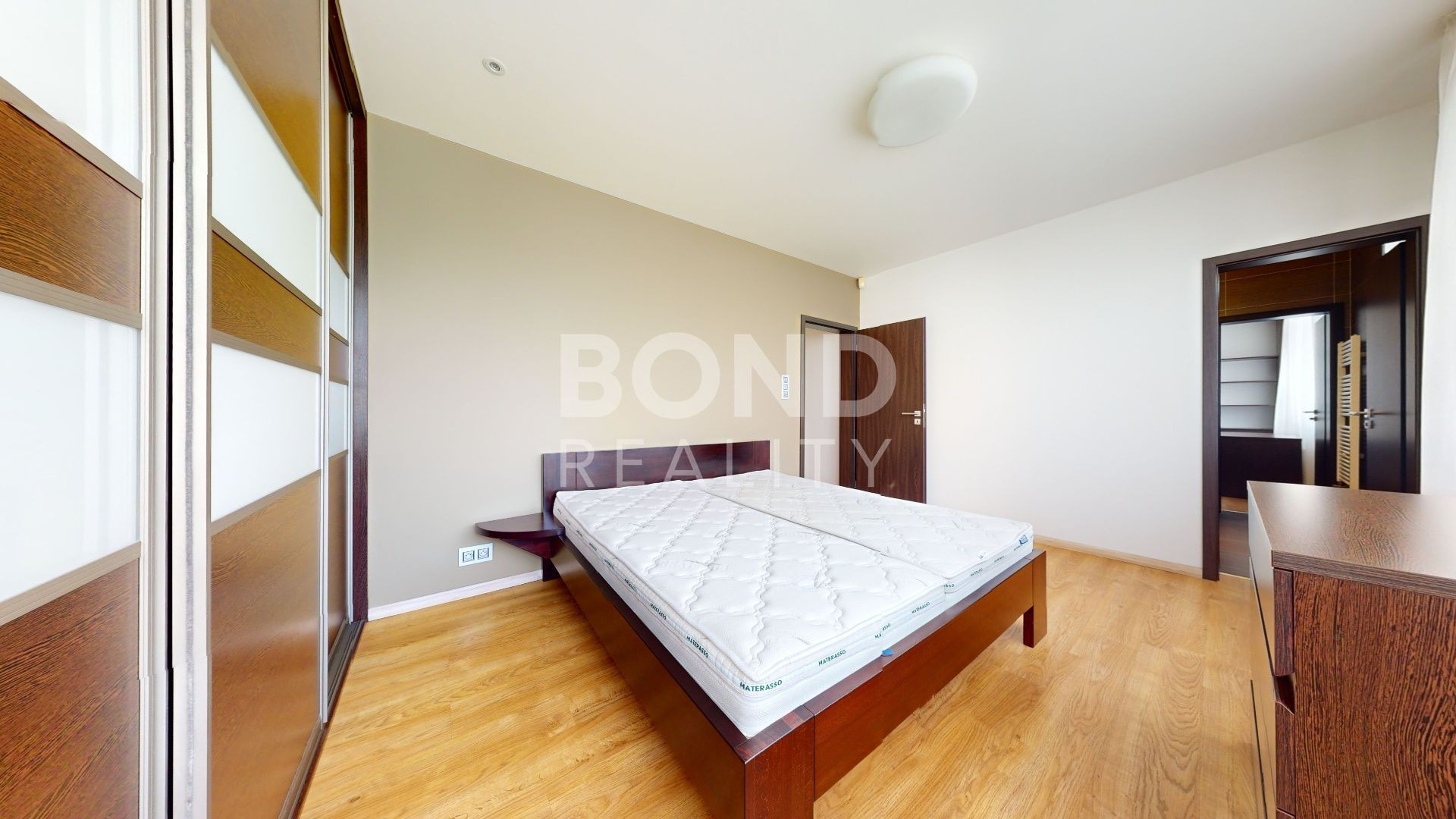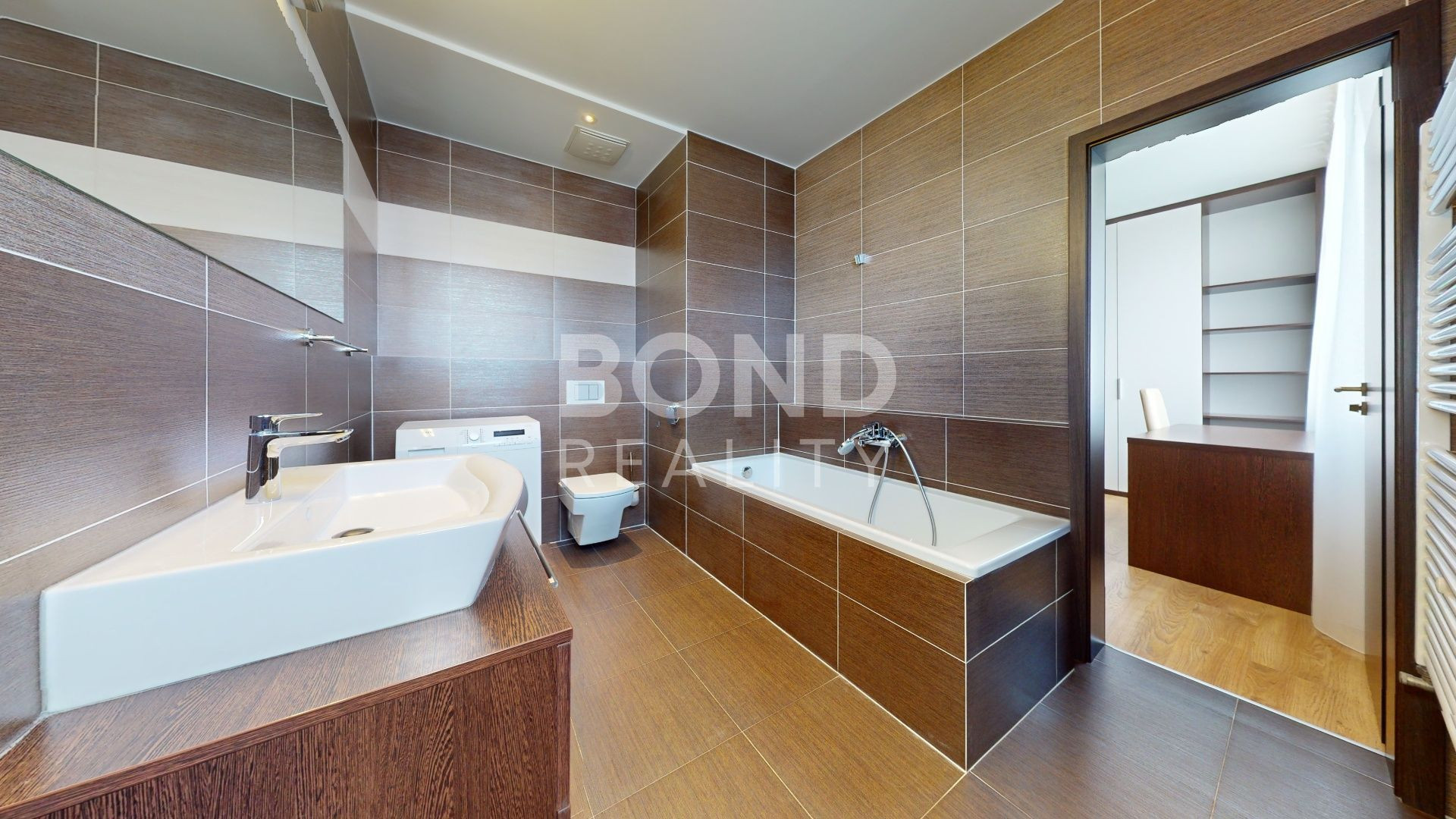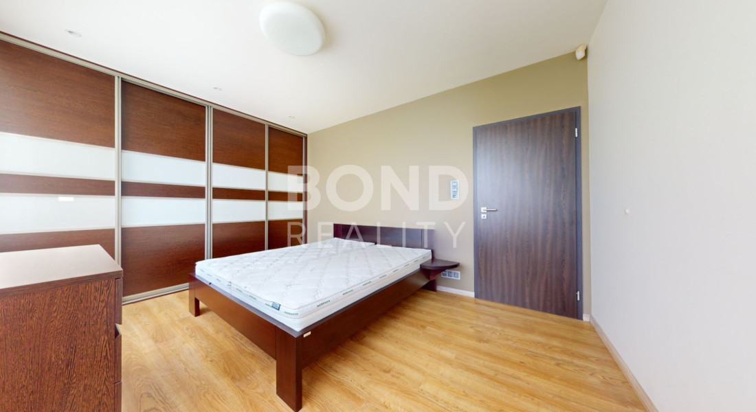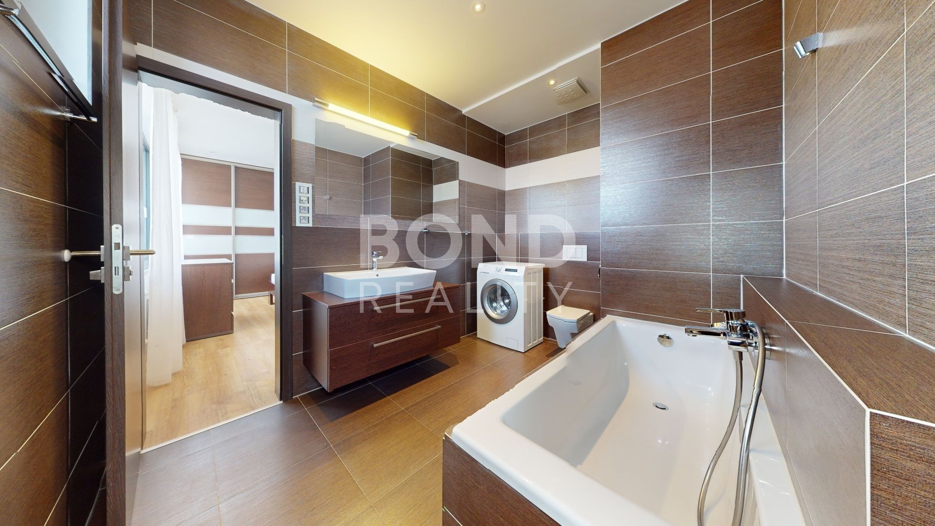 Byt má dve samostatné izby prepojené s priestrannou kúpeľnou.
