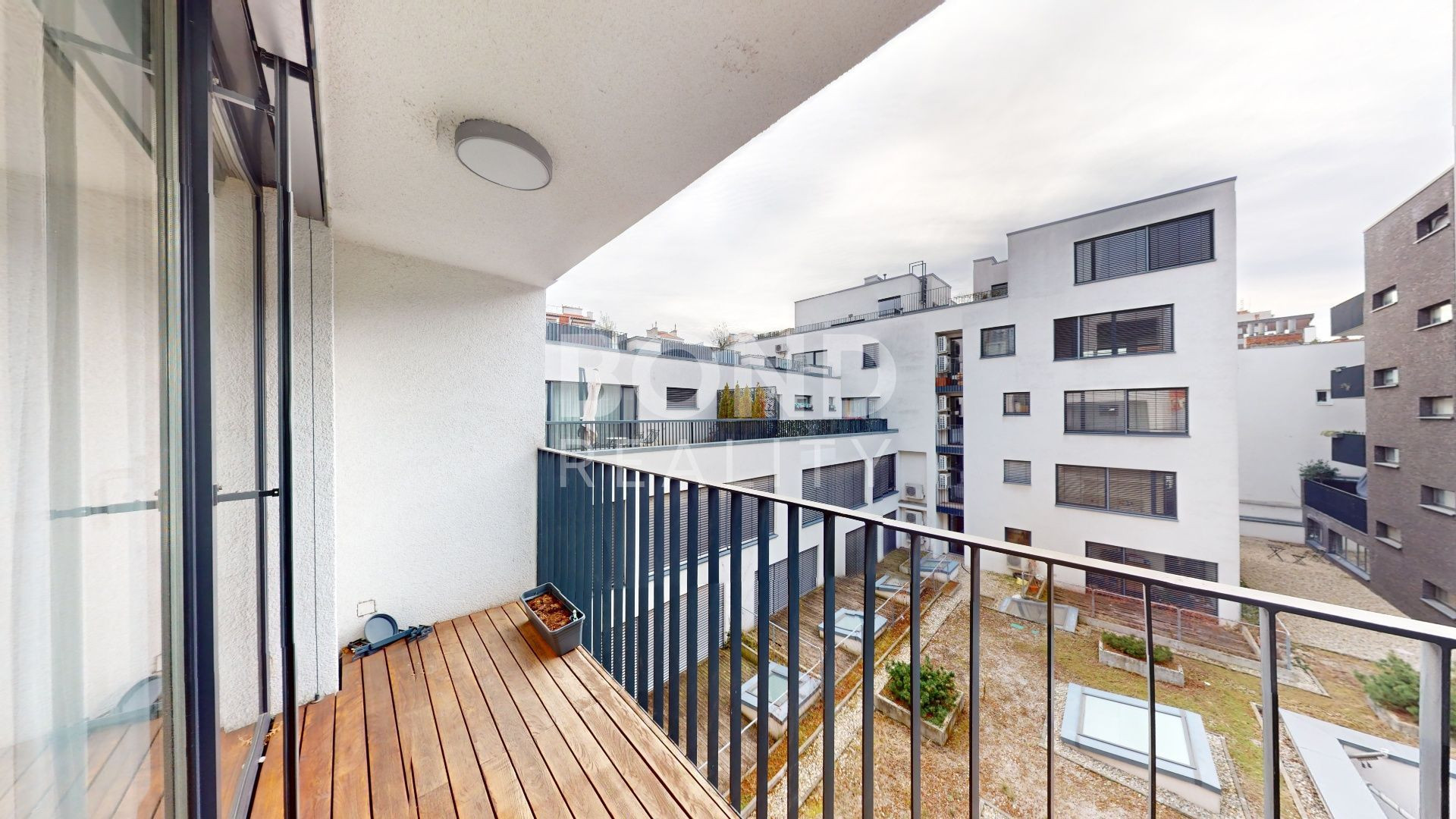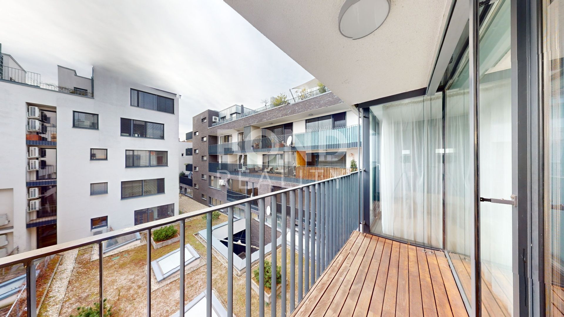 Byt pozostáva zo vstupnej haly so samostatnou toaletou a sprchou, obývacej miestnosti prepojenej s kuchyňou a jedálenským kútom. Z obývacej miestnosti sa vychádza na tichý balkón orientovaný do dvora.