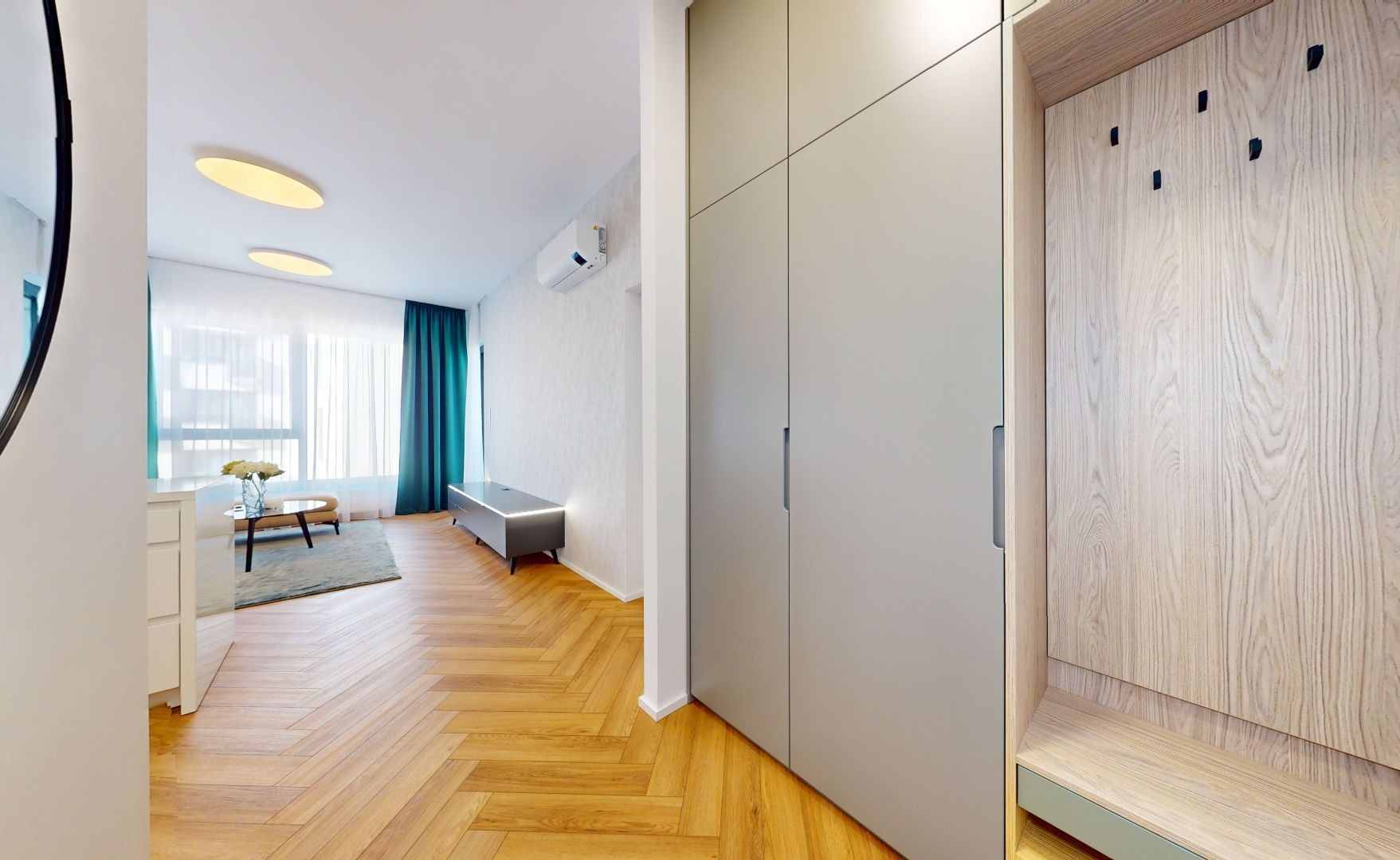 Pozostáva zo vstupnej chodby s úložným priestorom, obývačky prepojenej s kuchyňou, jednej samostatnej spálne, kúpeľne s vaňou a samostatnej toalety, Z obývacej miestnosti je východ na loggiu s výhľadom do záhrady areálu, výhľadom na Bratislavský hrad a Kamzík.