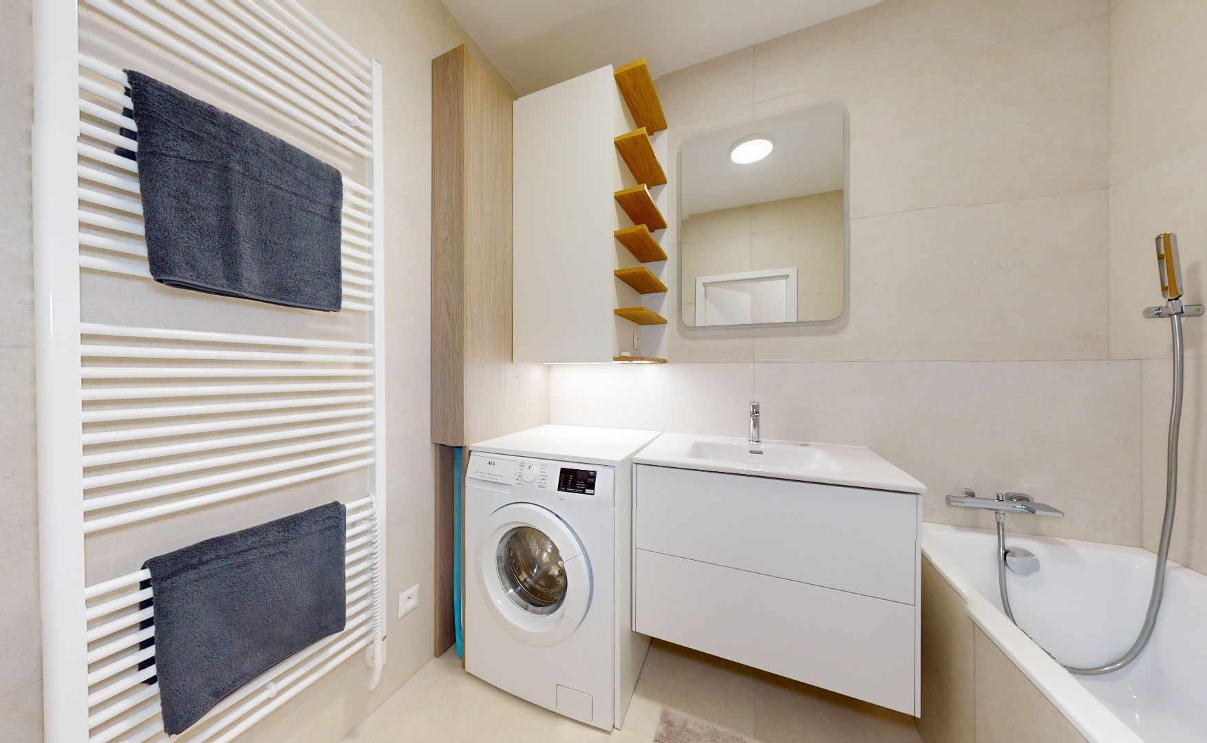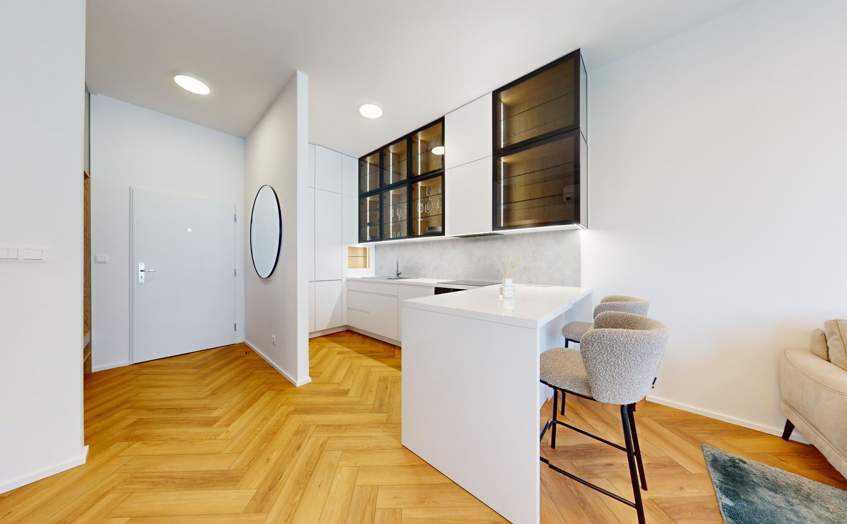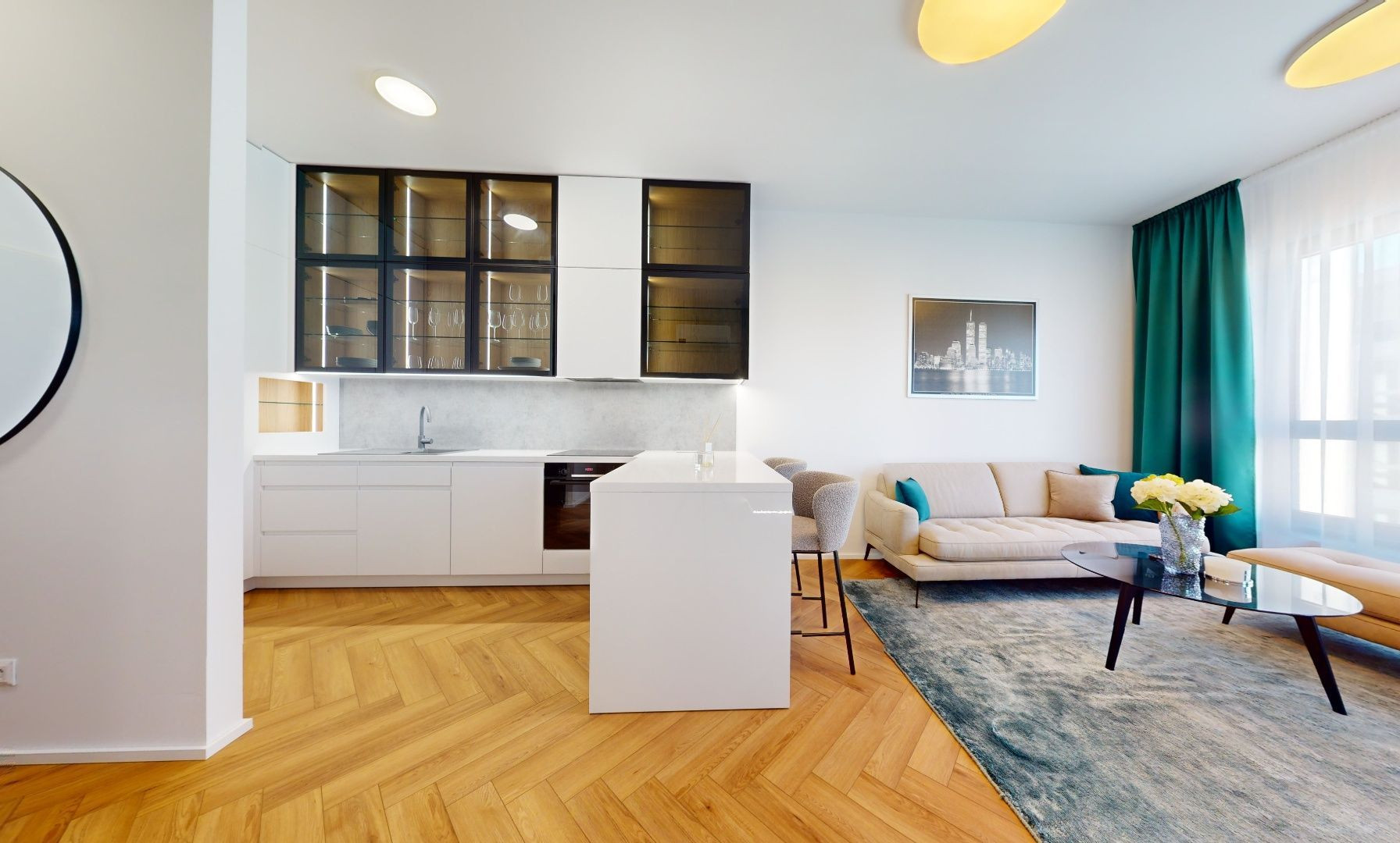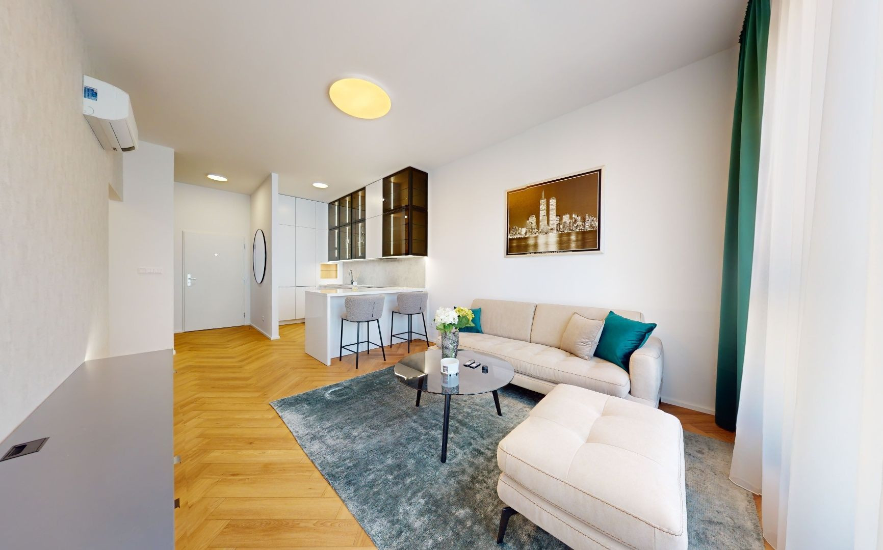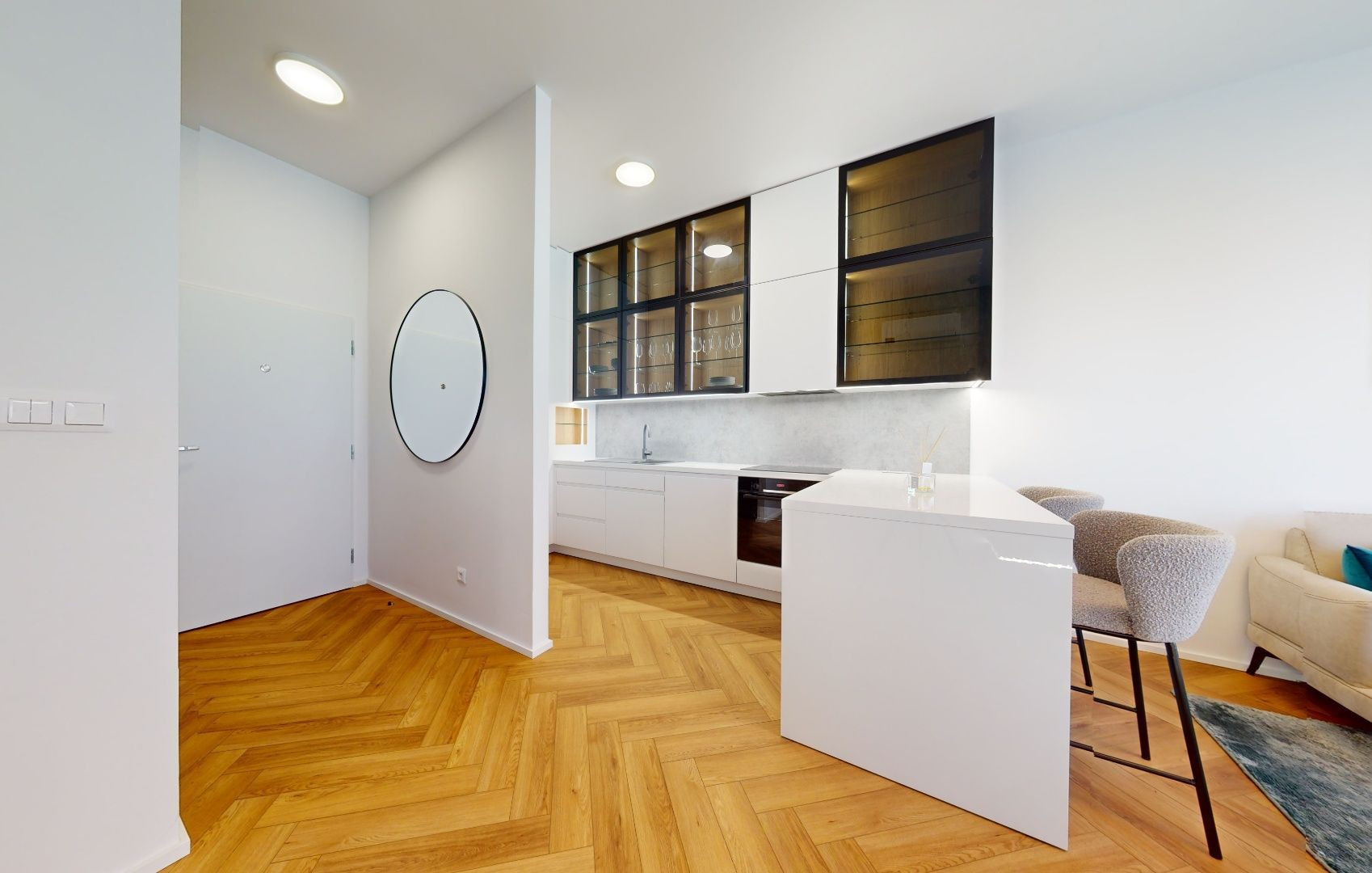 Byt je zariadený architektom na mieru a sú použité nadštandardné materiály. Kuchynská linka plne vybavená spotrebičmi Bosch a Samsung, pračka so sušičkou v kúpeľni, úložné priestory, hliníkové okná s trojsklami, exteriérové hliníkové žalúzie, klimatizácia, vysoké stropy 3,05m.
