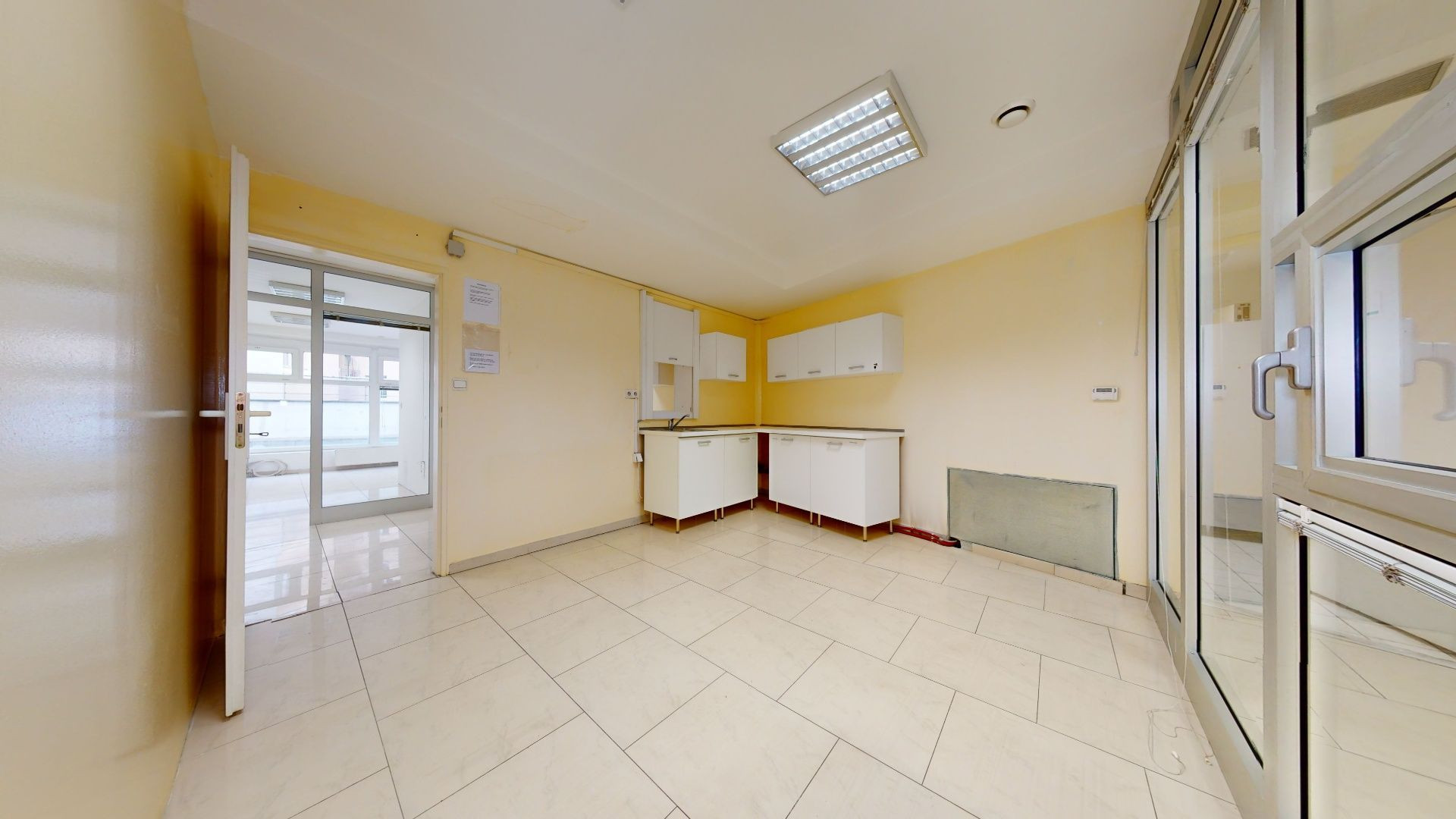 Pozostáva z jednej priestrannej časti so vstupom z ulice a ďalších priestorov pozostávajúcich zo štyroch miestností, dvoch skladov, šatne, WC a terasy.