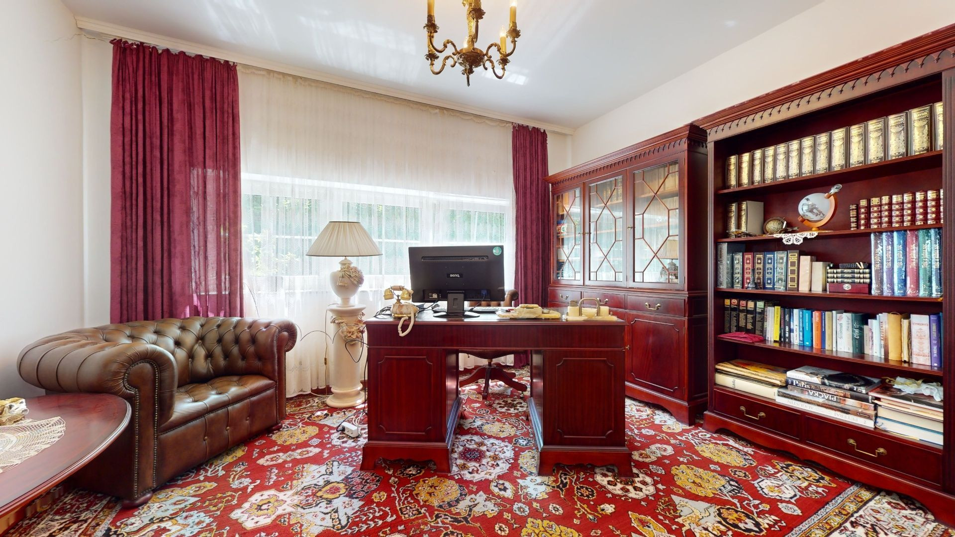 - priestranná galéria, hlavná spálňa s hlavnou kúpeľňou so zabudovanou vaňou do zeme, toaletou, bidetom, sprchovacími kútom ( z hlavnej spálne je prechod do kúpeľne cez veľký šatník )