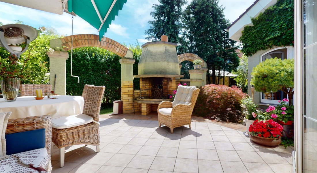 - výstup na priestrannú terasu s murovaným grilom a slnečnou markízou