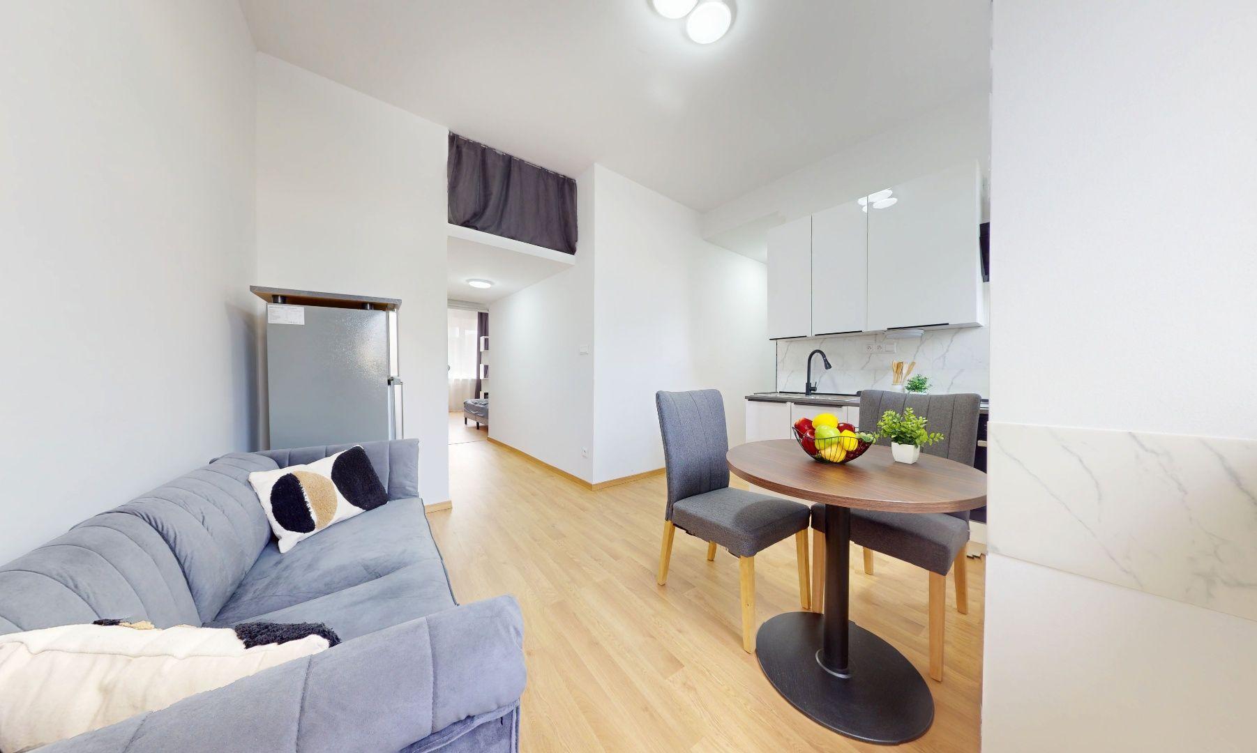 Byt je kompletne zariadený, s úplne novým nábytkom ešte nepoužitým. Spotrebiče, , televízia, chladnička , mikrovlnná rúra