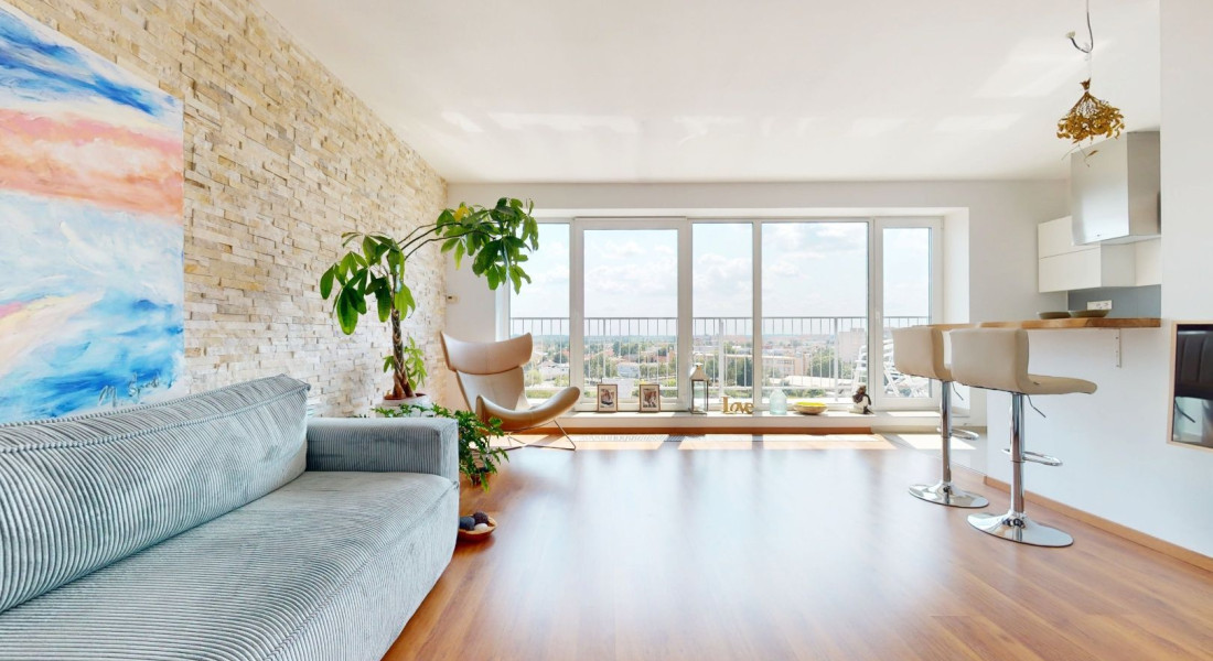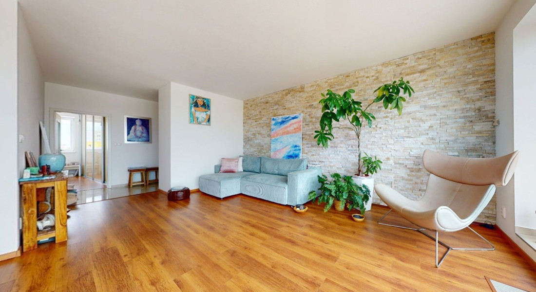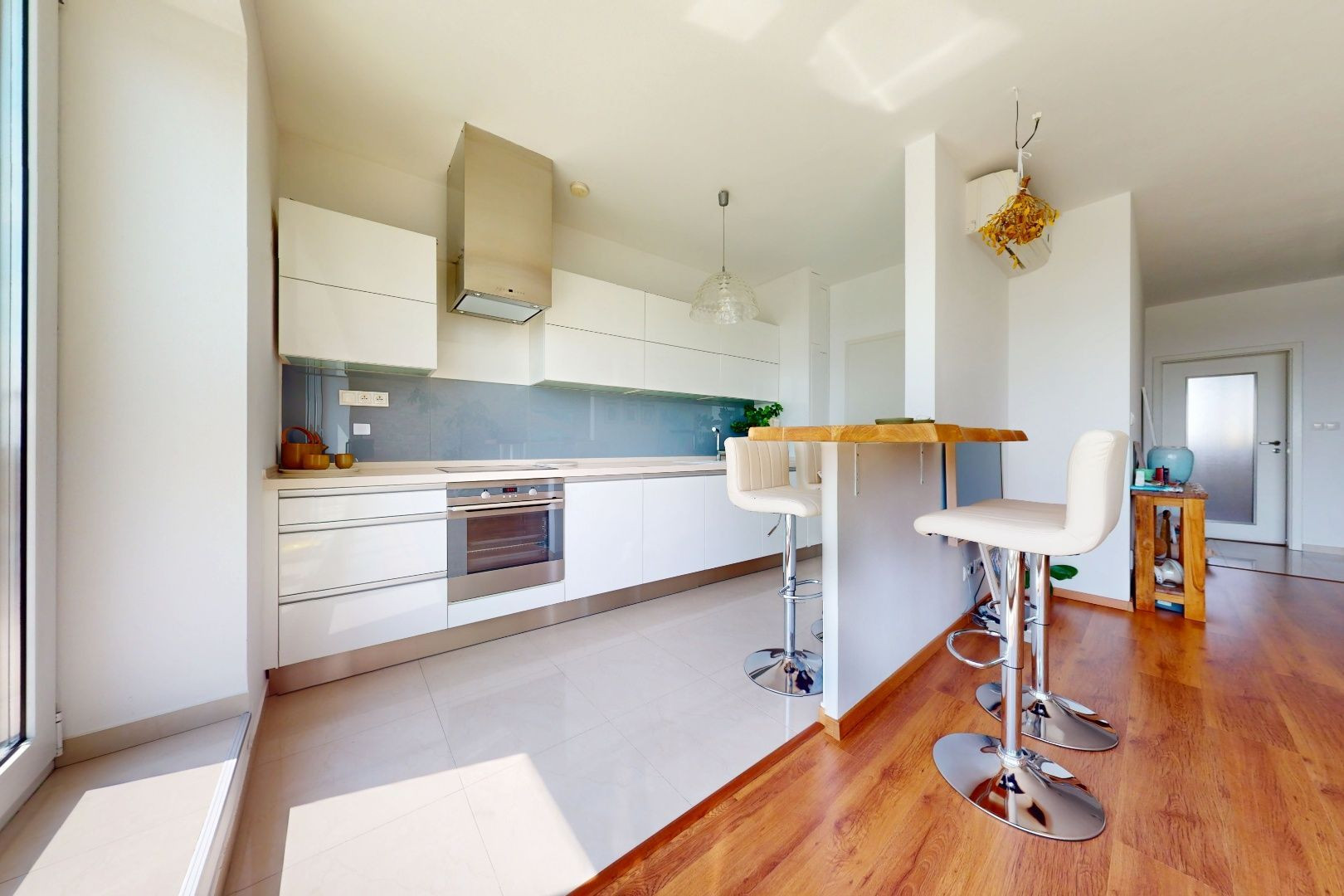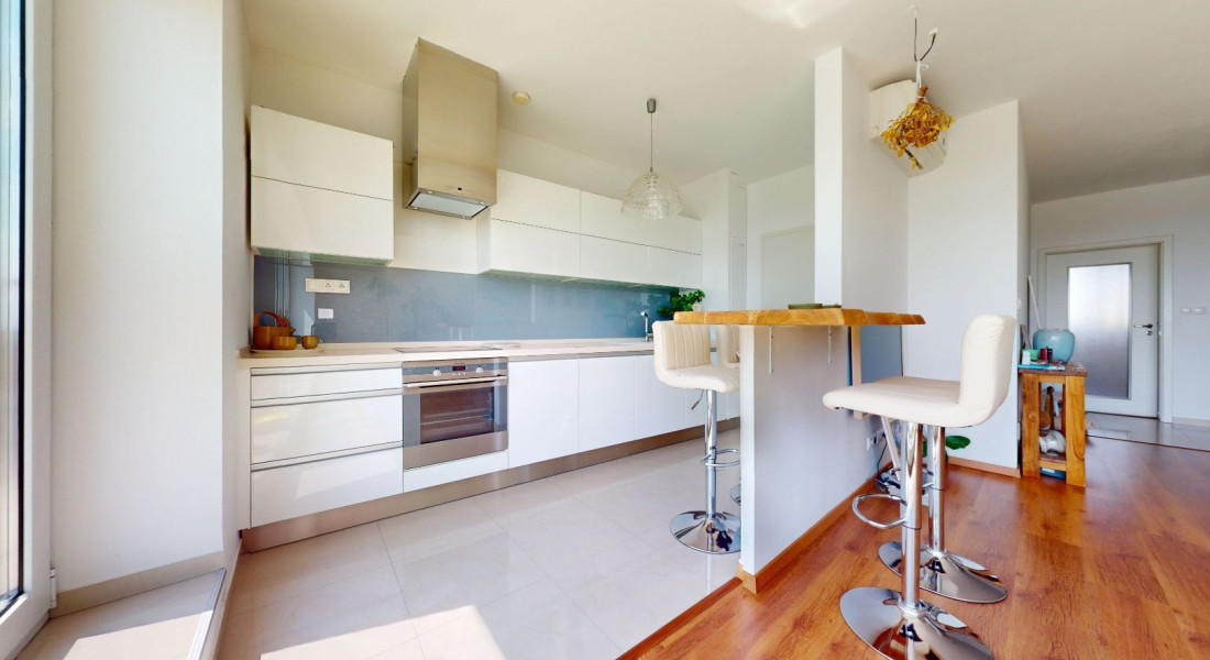 Byt je slnečný, svetlý, elegantne riešený a má príjemnú atmosféru.