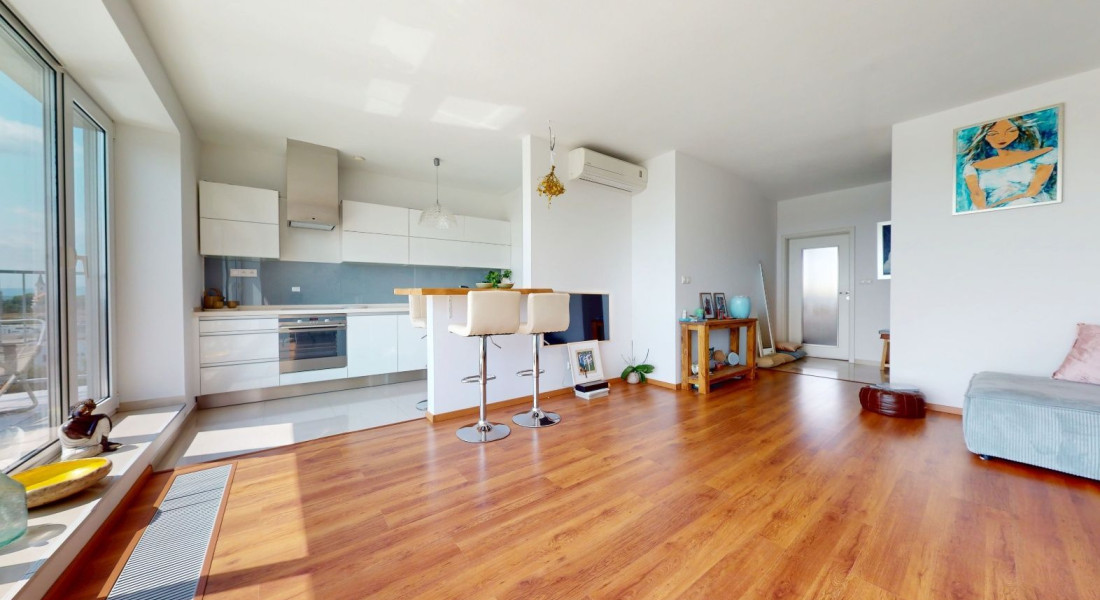 Pred dvoma rokmi boli v byte menené parkety, dlažba a bol vymaľovaný. Plastové okná, vstavané šatníky s vnútorným vybavením, klimatizácia Sinclair v obývacej izbe, laminátové podlahy, keramická dlažba, kvalitné obklady v kúpeľniach.