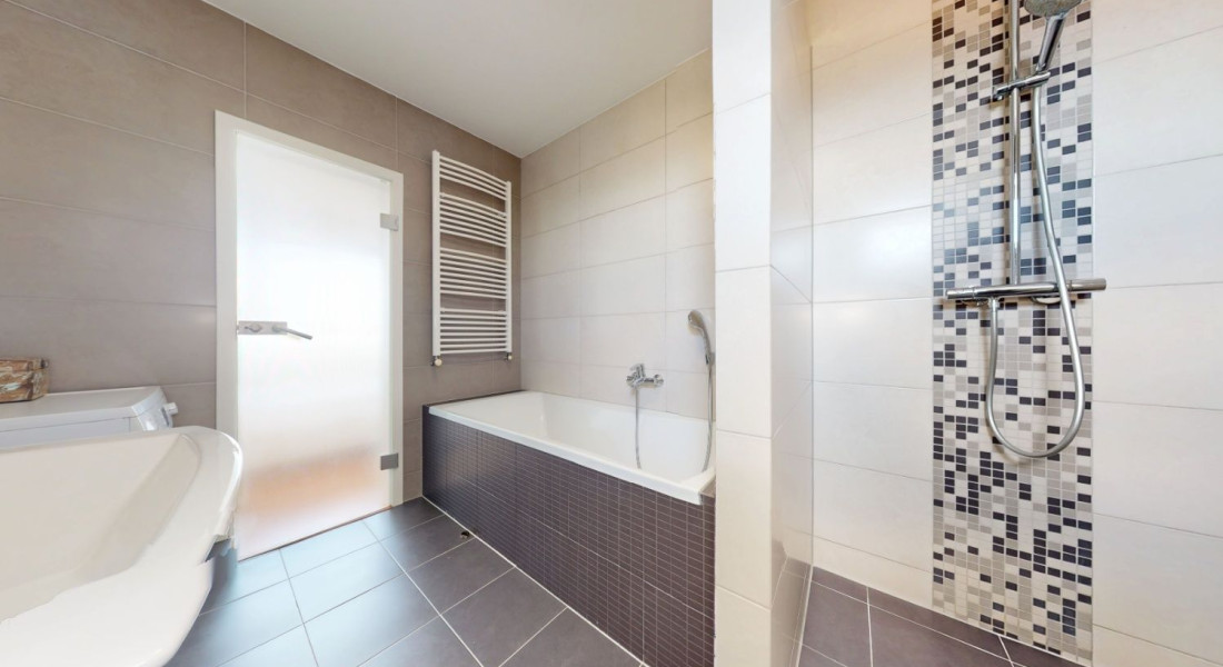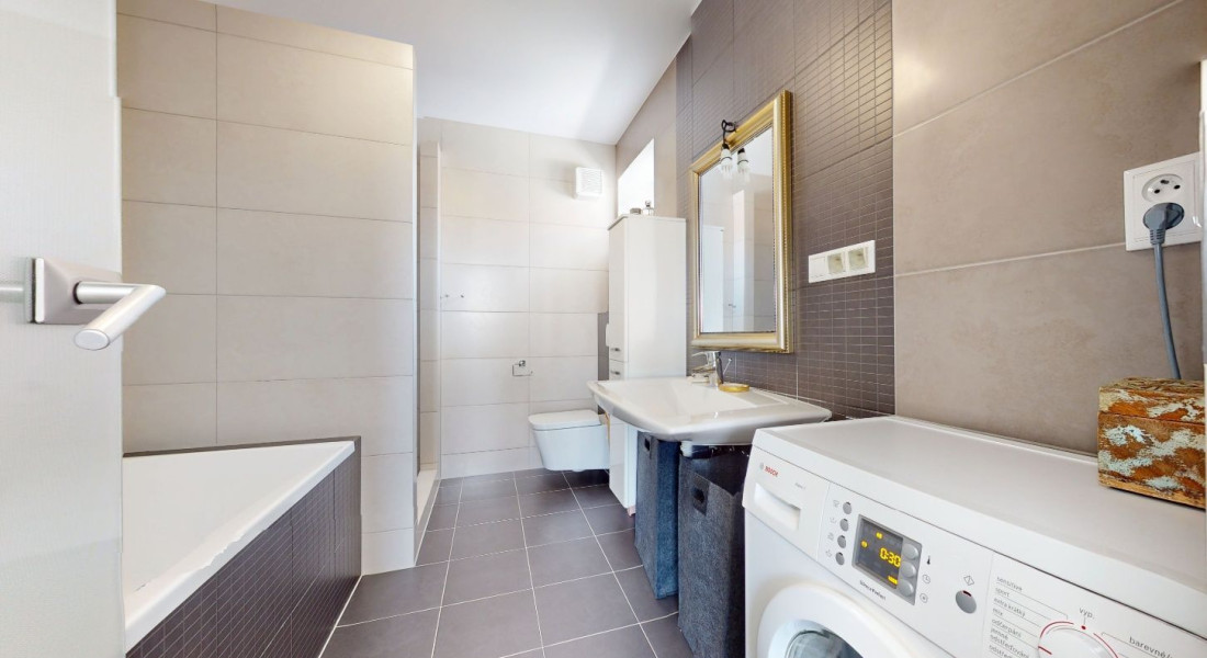 Byt má hlavnú spálňu so samostatnou kúpeľňou /sprchovací kút, vaňa, WC/. Dve samostatné detské izby s jednou kúpeľňou /sprcha, WC/.