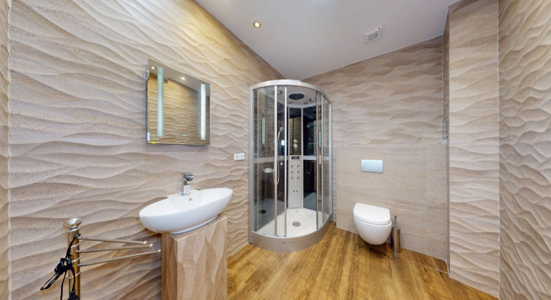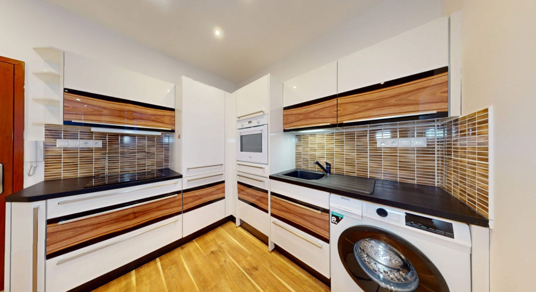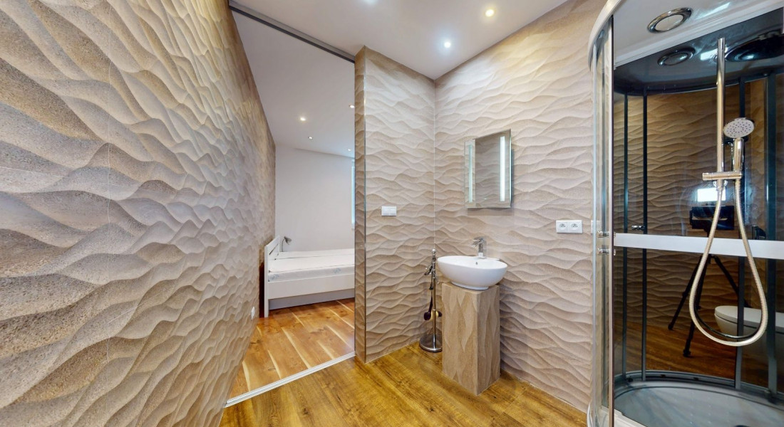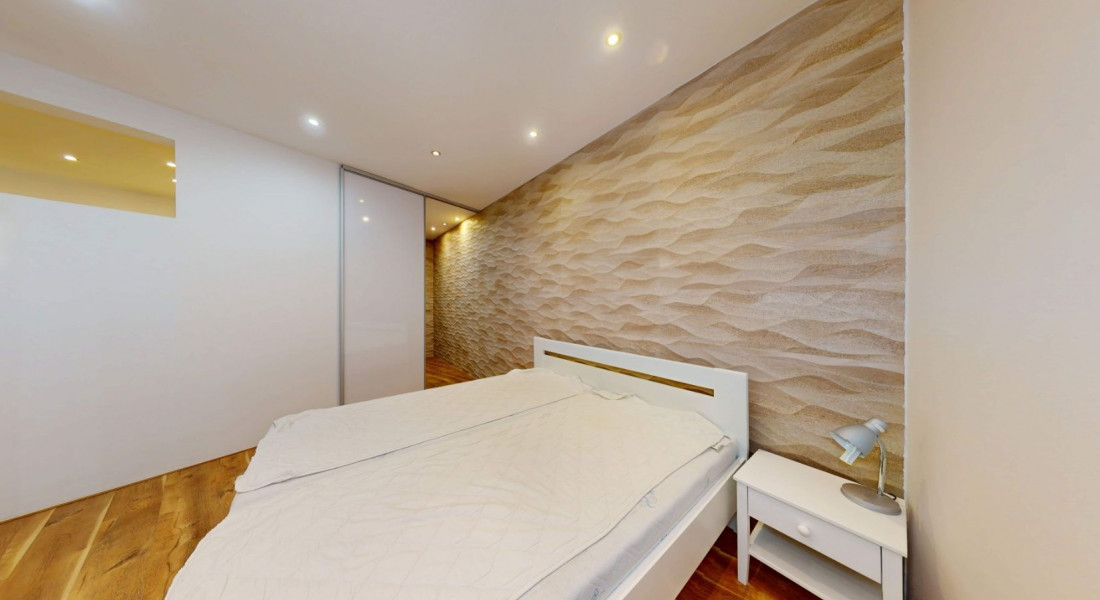 Byt je riešený ako apartmán, pozostáva z vstupnej chodby s otvorenou dispozíciou do kuchyne a obývačky, spálne, kúpeľne s WC.