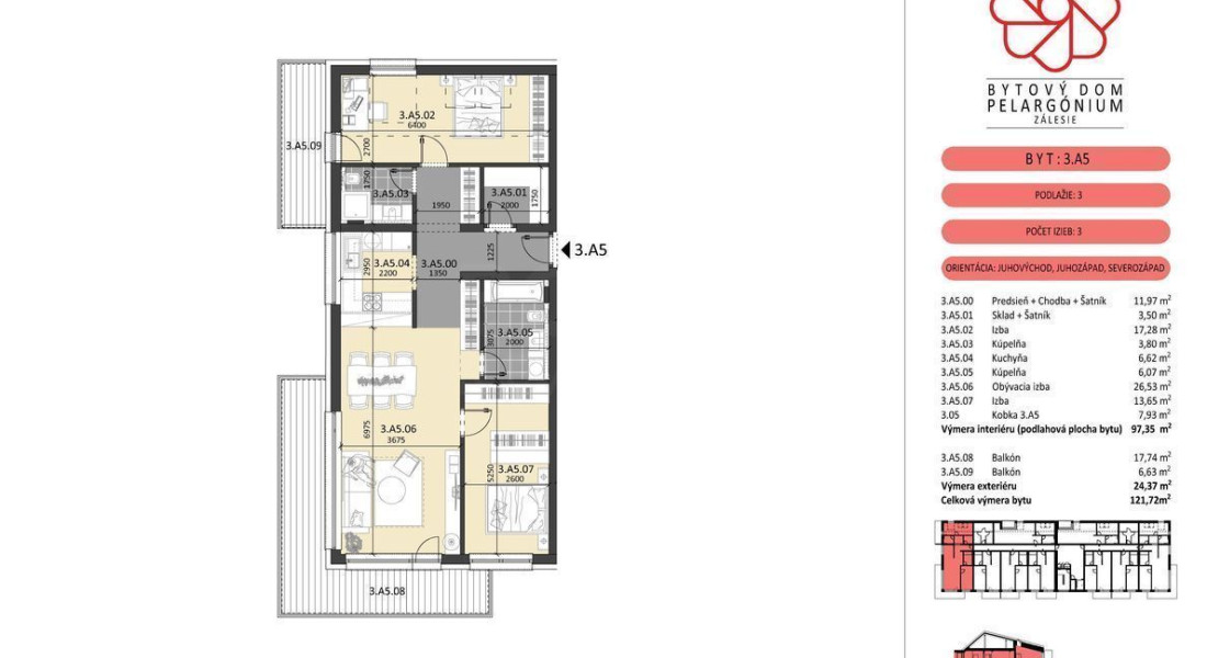 | Typ: | 3-izbový byt |