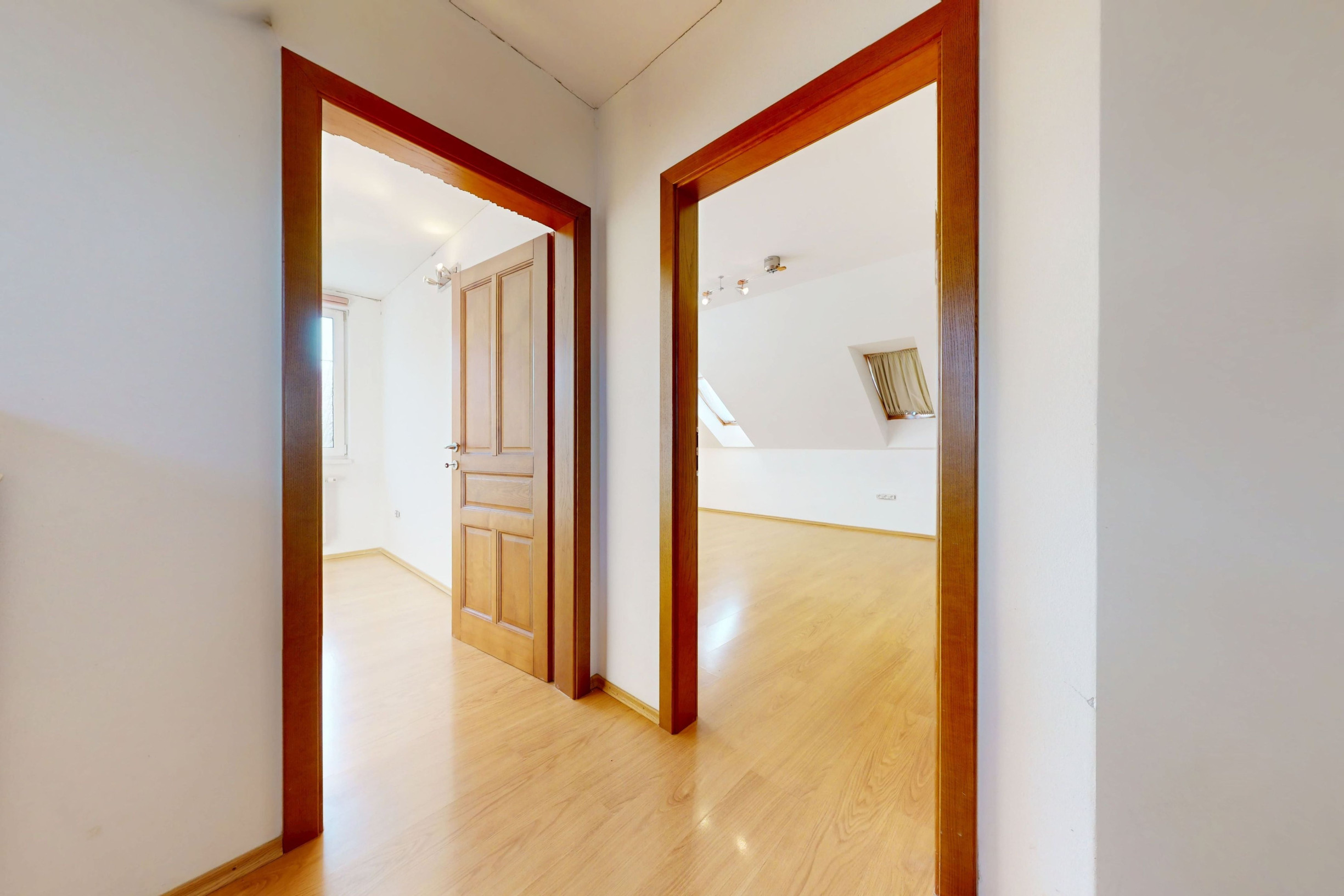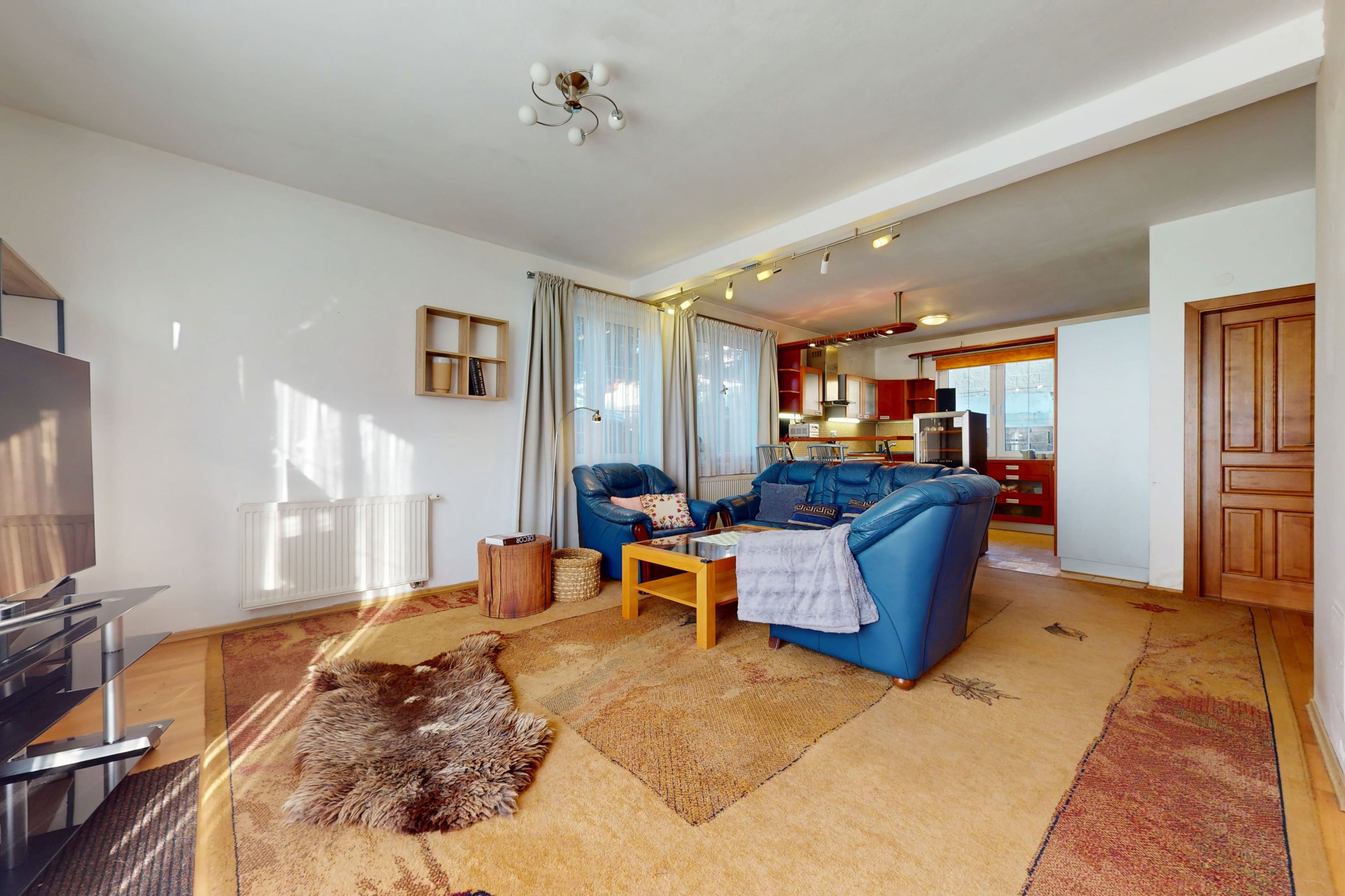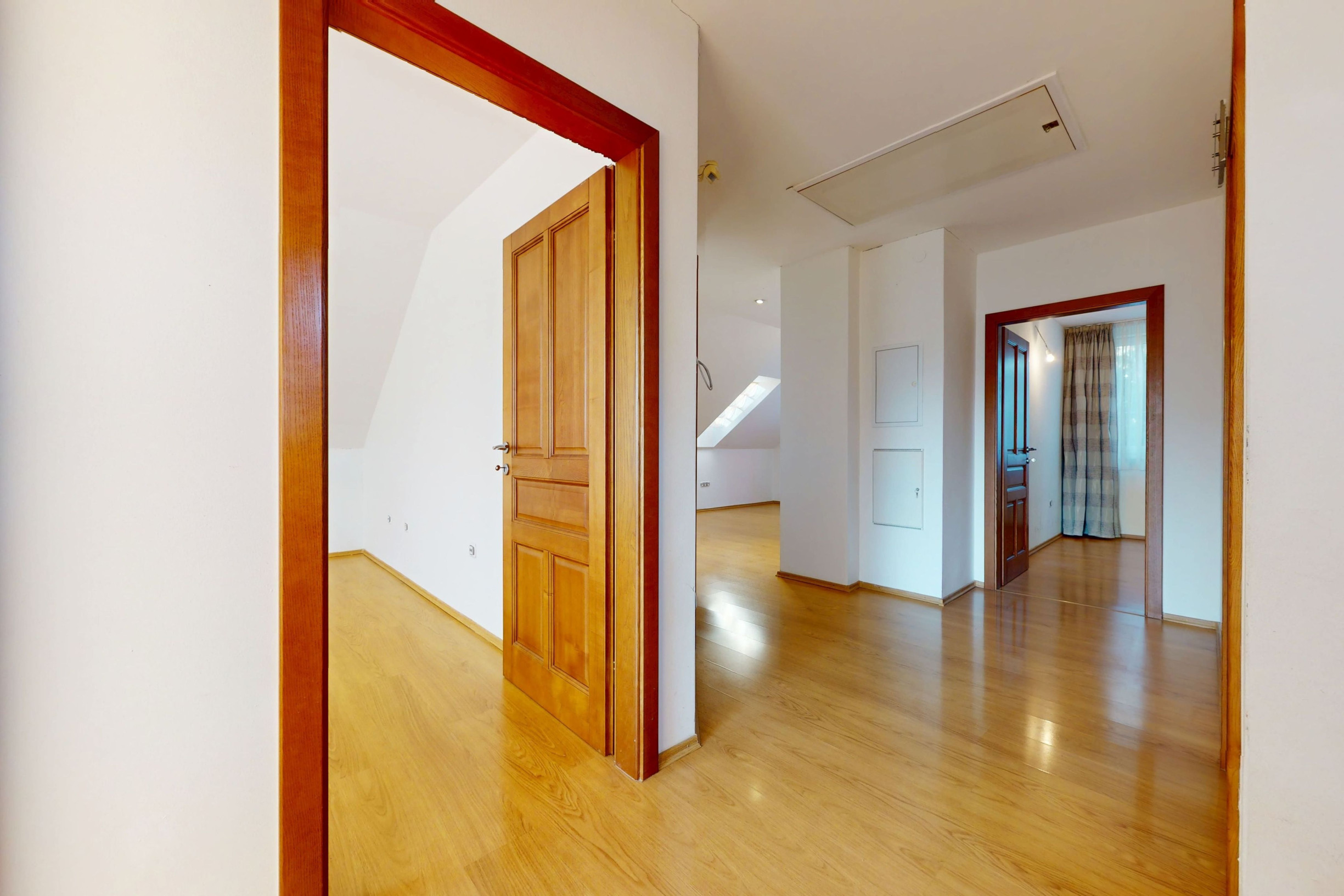 - obývaciu izbu, 2 samostatné izby (spálňa, pracovňa), kuchynský kút vrátane vstavaných spotrebičov (umývačka riadu, mikrovlnná rúra, elektrická rúra, plynový sporák, vstavaná chladnička s mrazničkou),kúpeľňu so sprchovým kútom a WC, predsieň, schodisko, technickú miestnosť s plynovým kondenzačným kotlom Viessmann VITODENS 100.