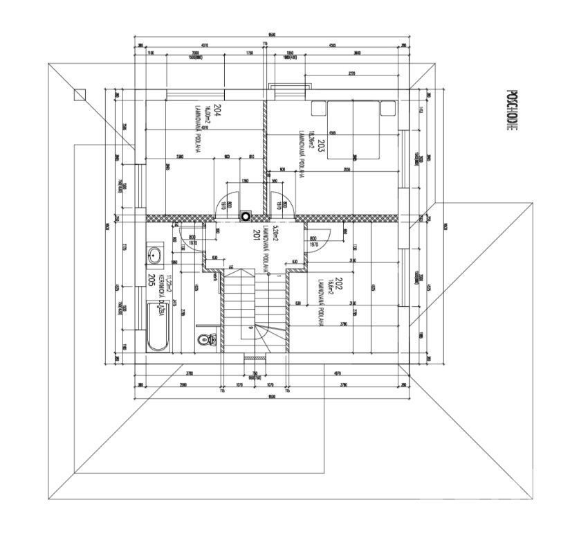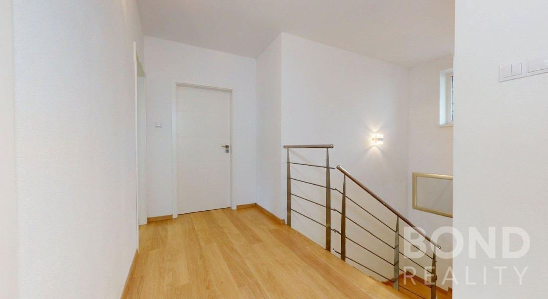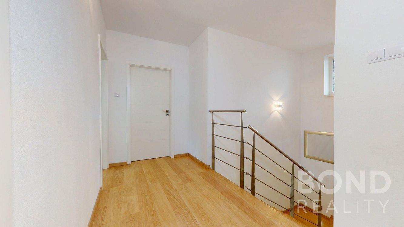 Poschodie ponúka chodbu, tri samostatné izby a ďalšiu kúpeľňu s toaletou.