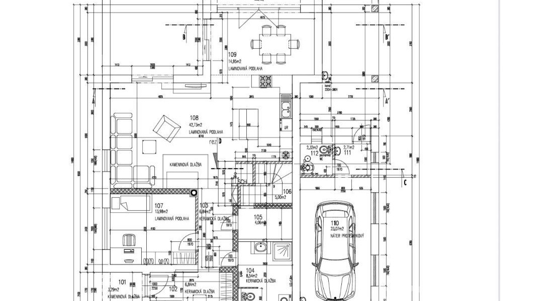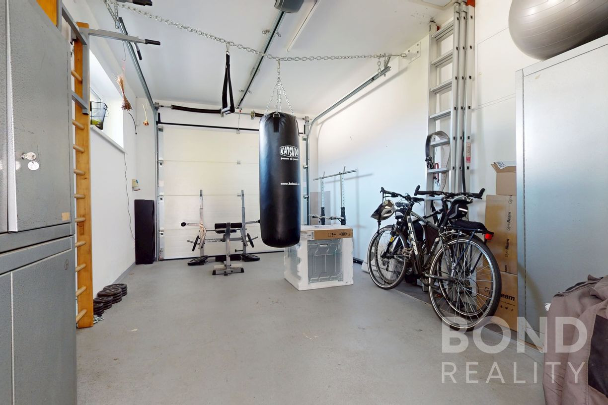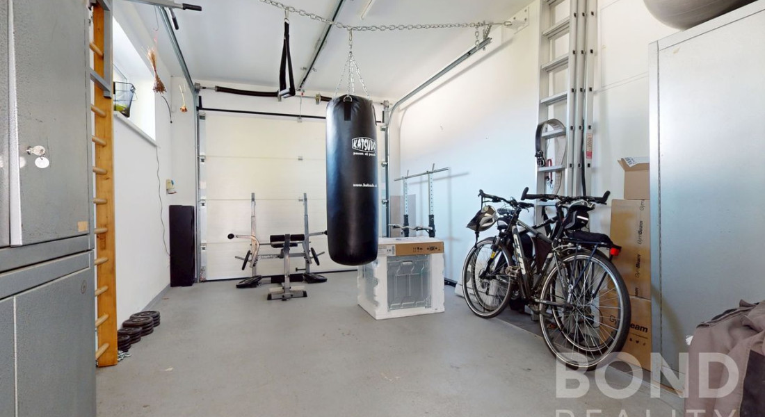 Súčasťou nehnuteľnosti je garáž a samostatný murovaný prístrešok pre druhé auto so samostatným skladom.