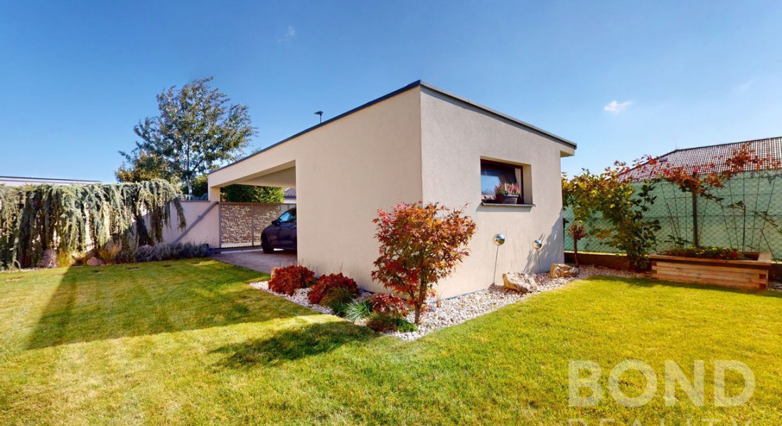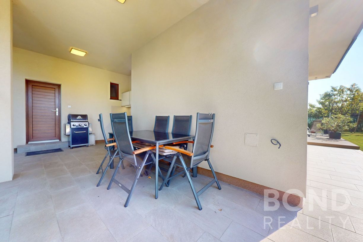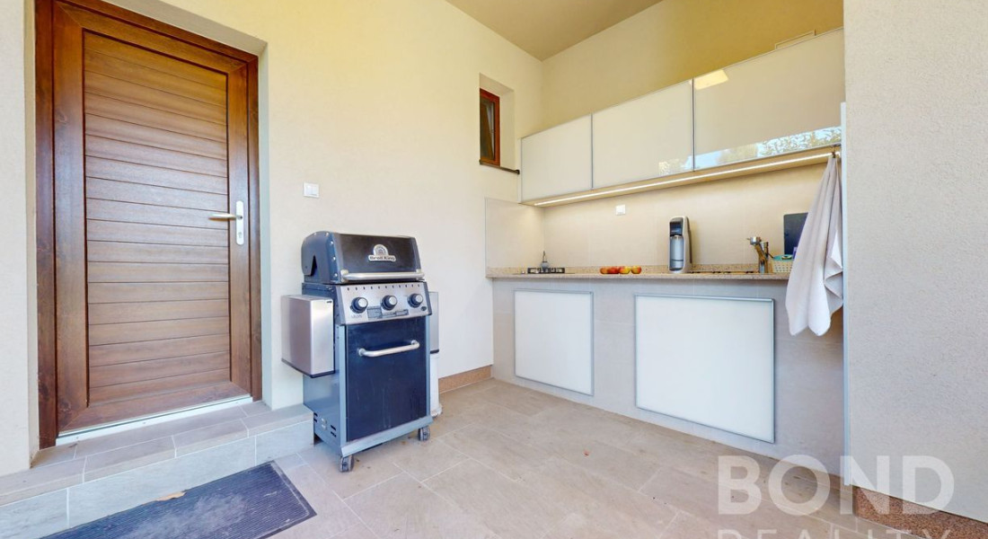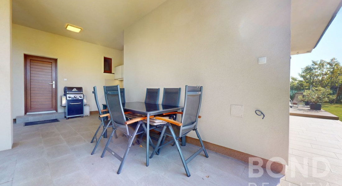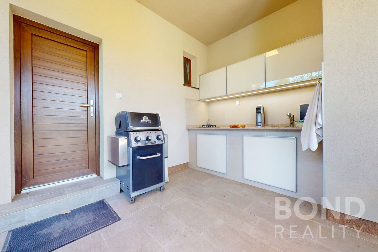 Komfort bývania dopĺňa terasa a vonkajšia prestrešená letná kuchyňa so sedením. Záhrada je vybavená automatickou závlahou a vlastnou studňou.