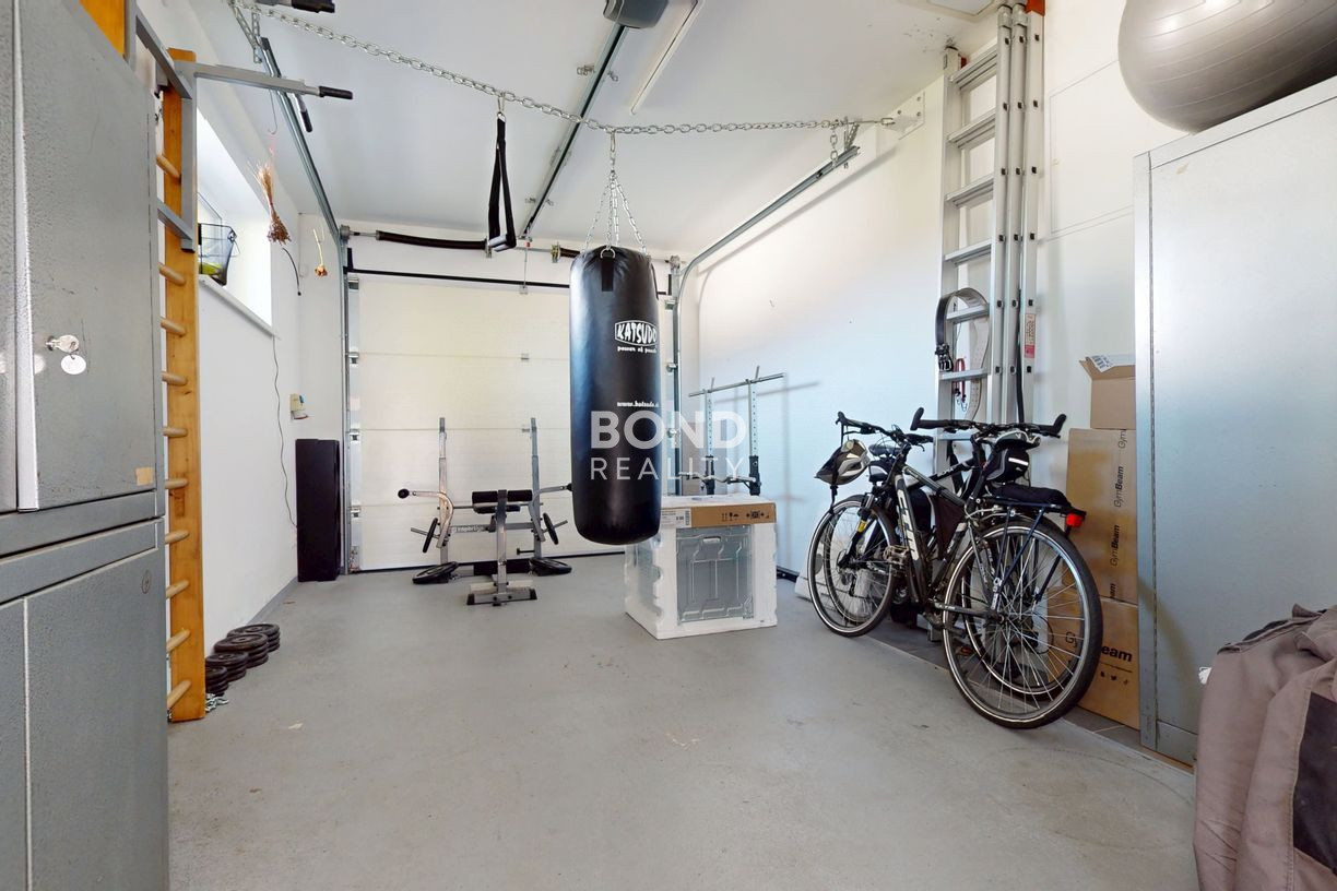 Súčasťou nehnuteľnosti je garáž a samostatný murovaný prístrešok pre druhé auto so samostatným skladom.