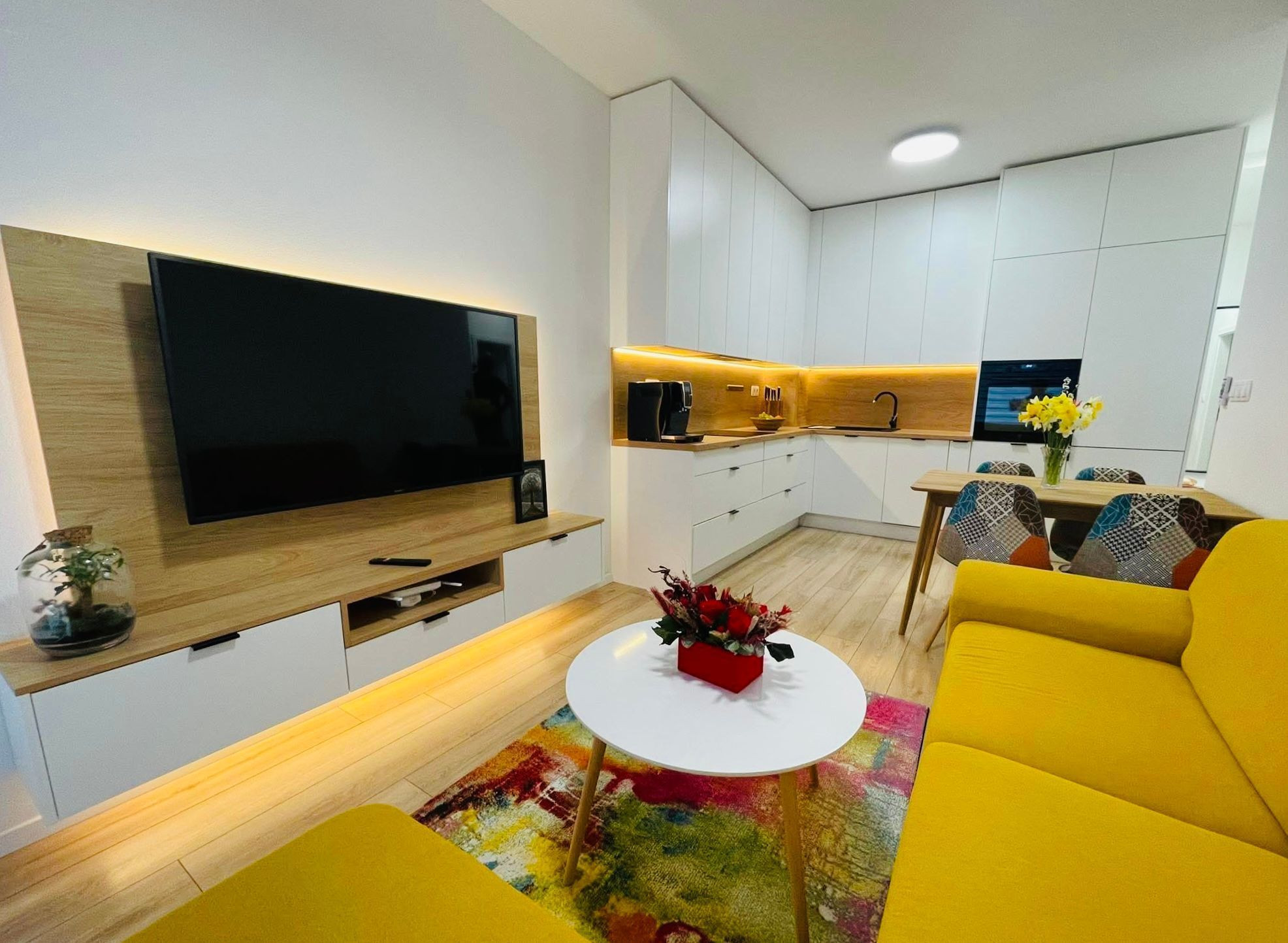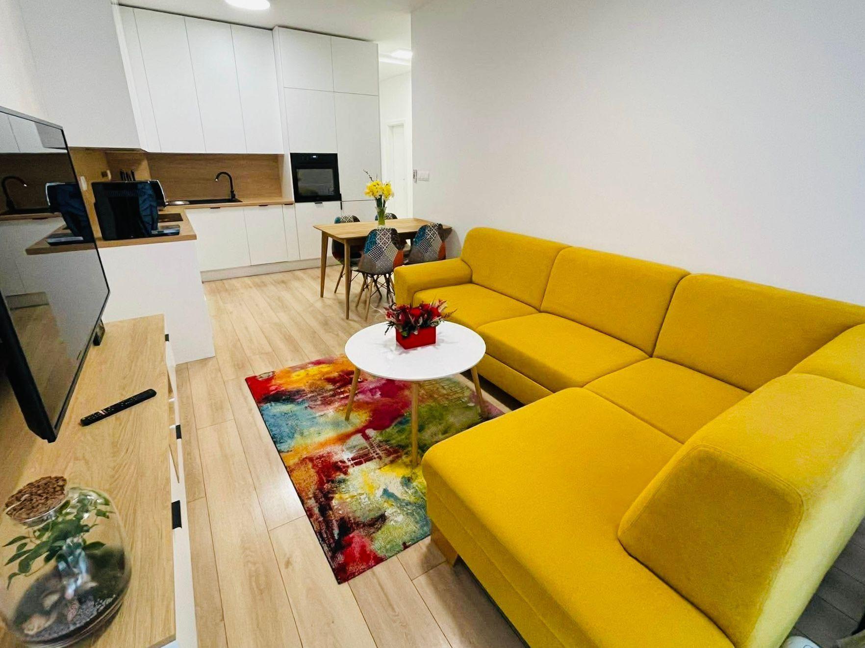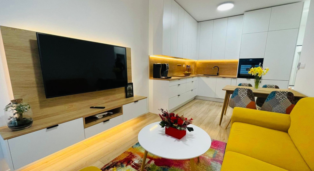 Dispozícia pozostáva z obývacej izby spojenej s kuchyňou, samostatnej spálne a kúpeľne s WC. Kuchyňa je vybavená vstavanými spotrebičmi, súčasťou bytu je aj klimatizácia pre vyšší komfort bývania.