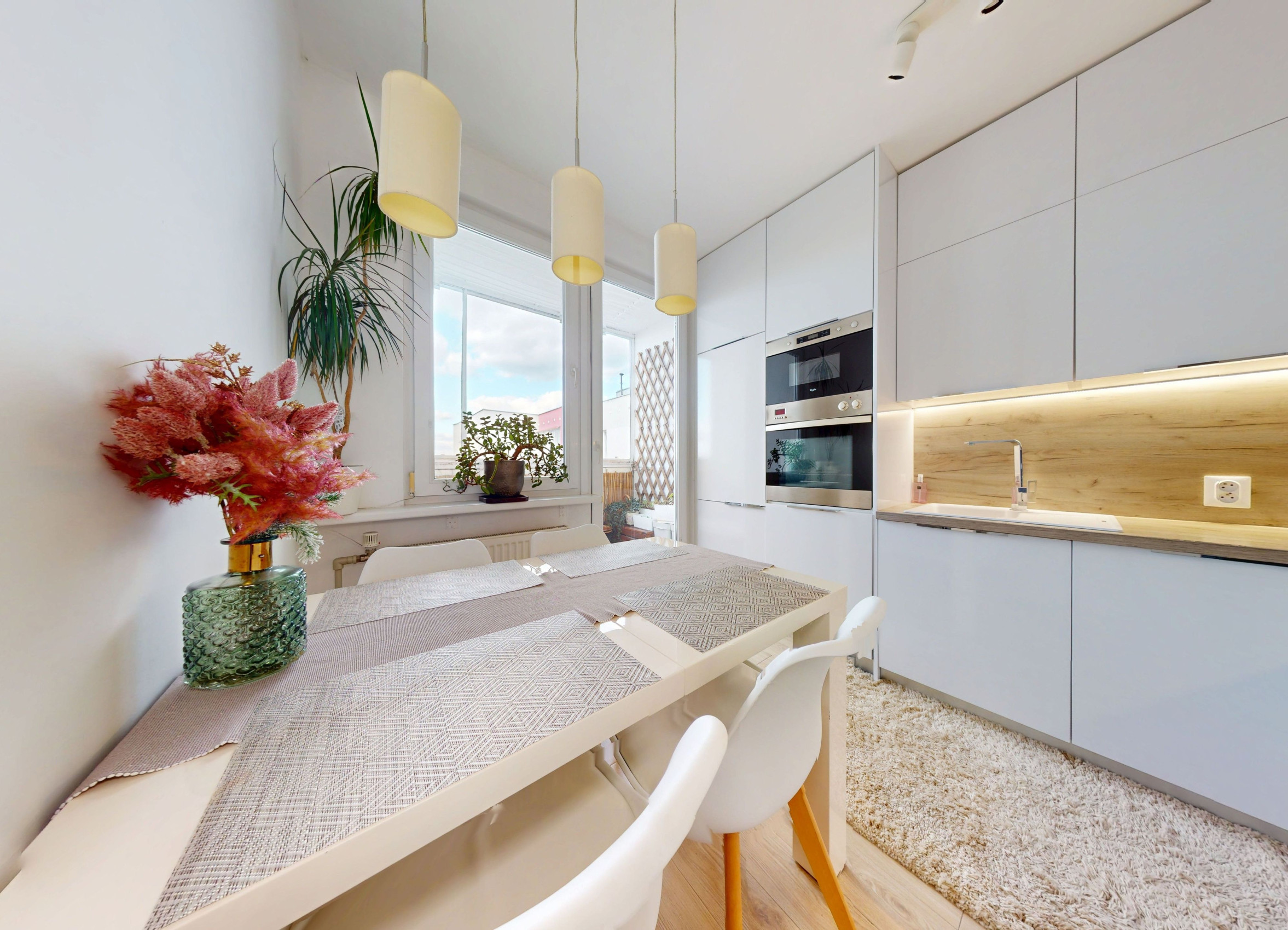 Byt prešiel v roku 2018 kompletnou rekonštrukciou: vchodové bezpečnostné dvere, murované jadro, nová kúpeľňa, sanita, obklady, dlažby, interiérové dvere, podlahy, kompletná elektroinštalácia, vodoinštalácia, nové radiátory a klimatizácia. Súčasťou bytu je vstavaný nábytok na mieru, kuchynská linka so zabudovanými spotrebičmi.