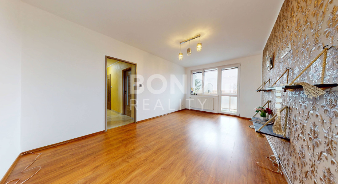 Byt o výmere 63m2, nachádzajúci sa na 2/3 poschodí, pozostáva zo spálne s veľkým rolldorom, izby, priestrannej obývačky s východom na loggiu a s klimatizáciou, sam. kuchyne, cez ktorú sa vchádza do špajze/kotolne, chodby s rolldorom, kúpeľne s veľkým sprchovým kútom a sam. WC (viď. pôdorys posledná foto). K bytu podľa listu vlastníctva prislúcha priestranná pivnica o rozmere 14m2 a loggia, teda spolu výborných 79,94m2. Pozemok pod bytovým domom je odkúpený.